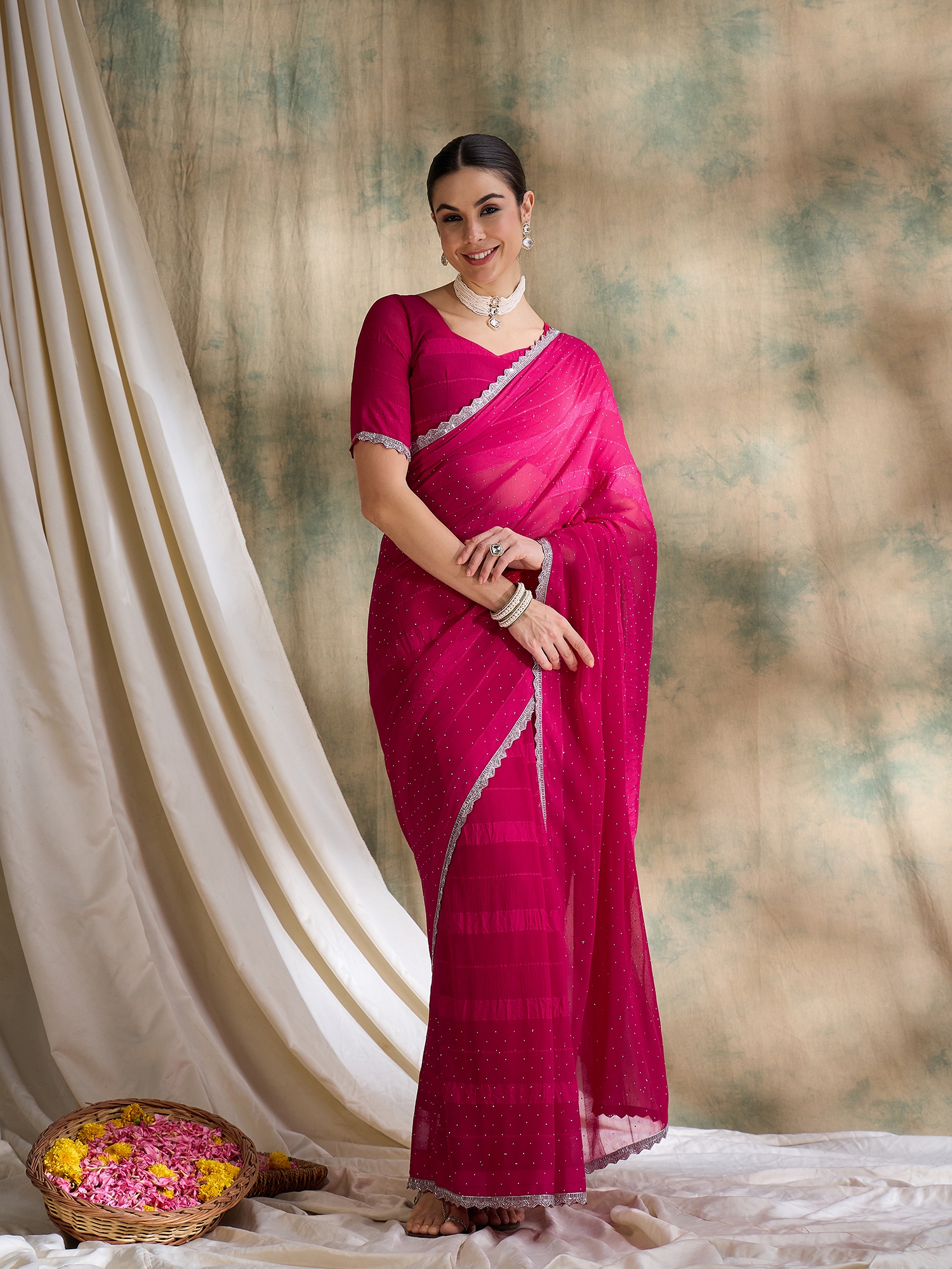 AASTHA FASHION Fashion Dream Womens Pink Vichitra Silk Saree | Soft & Elegant Traditional Wear
