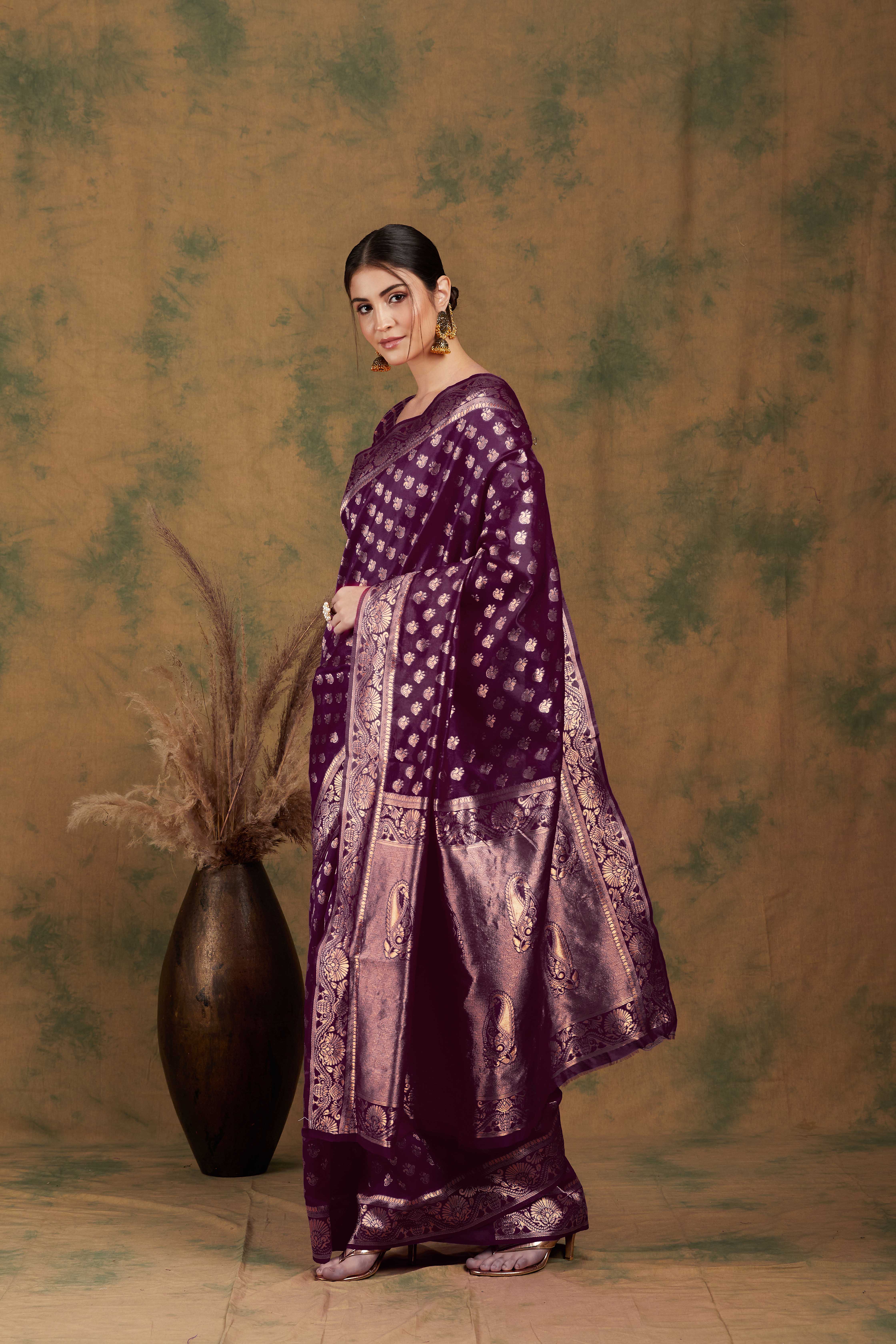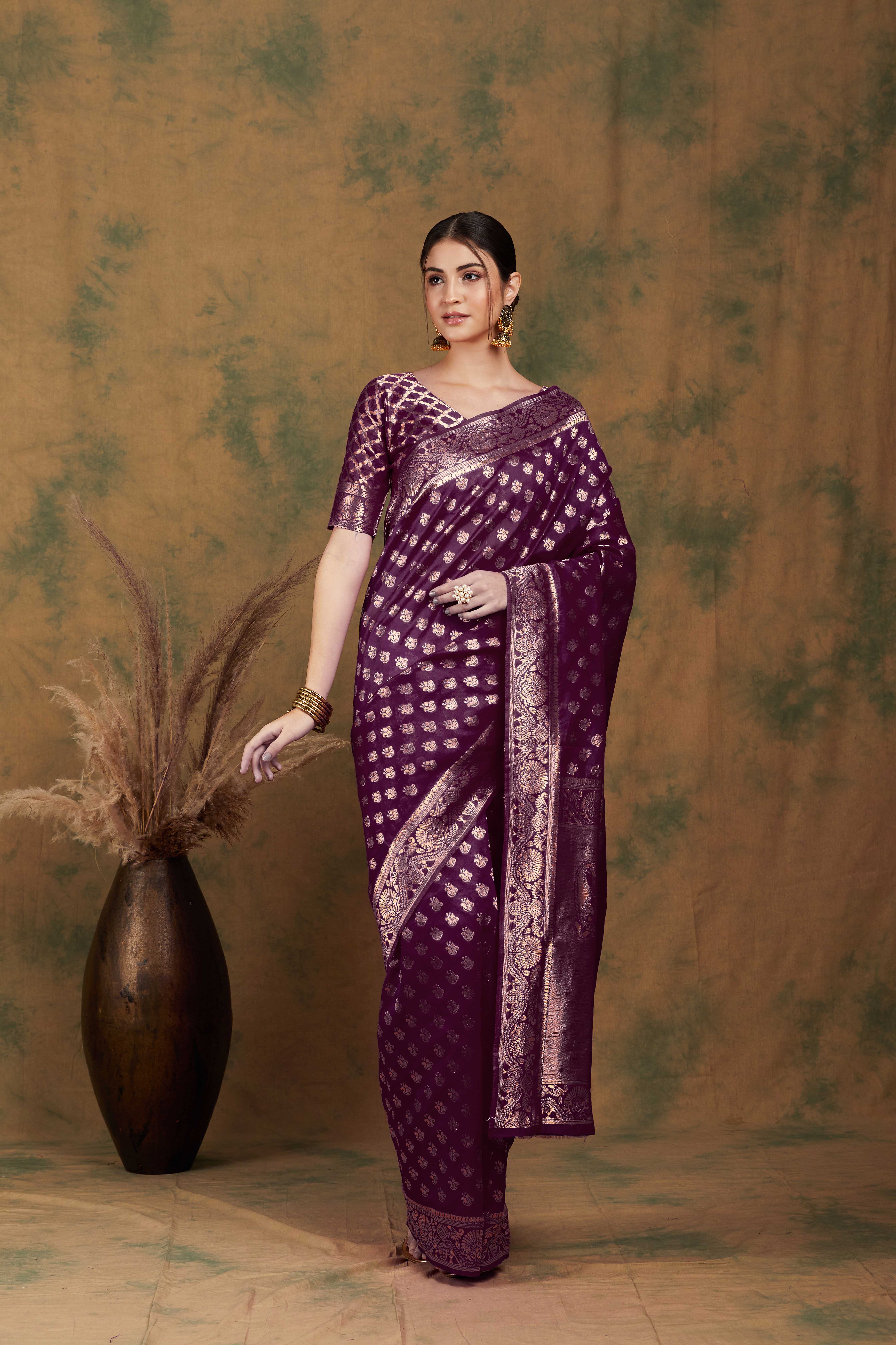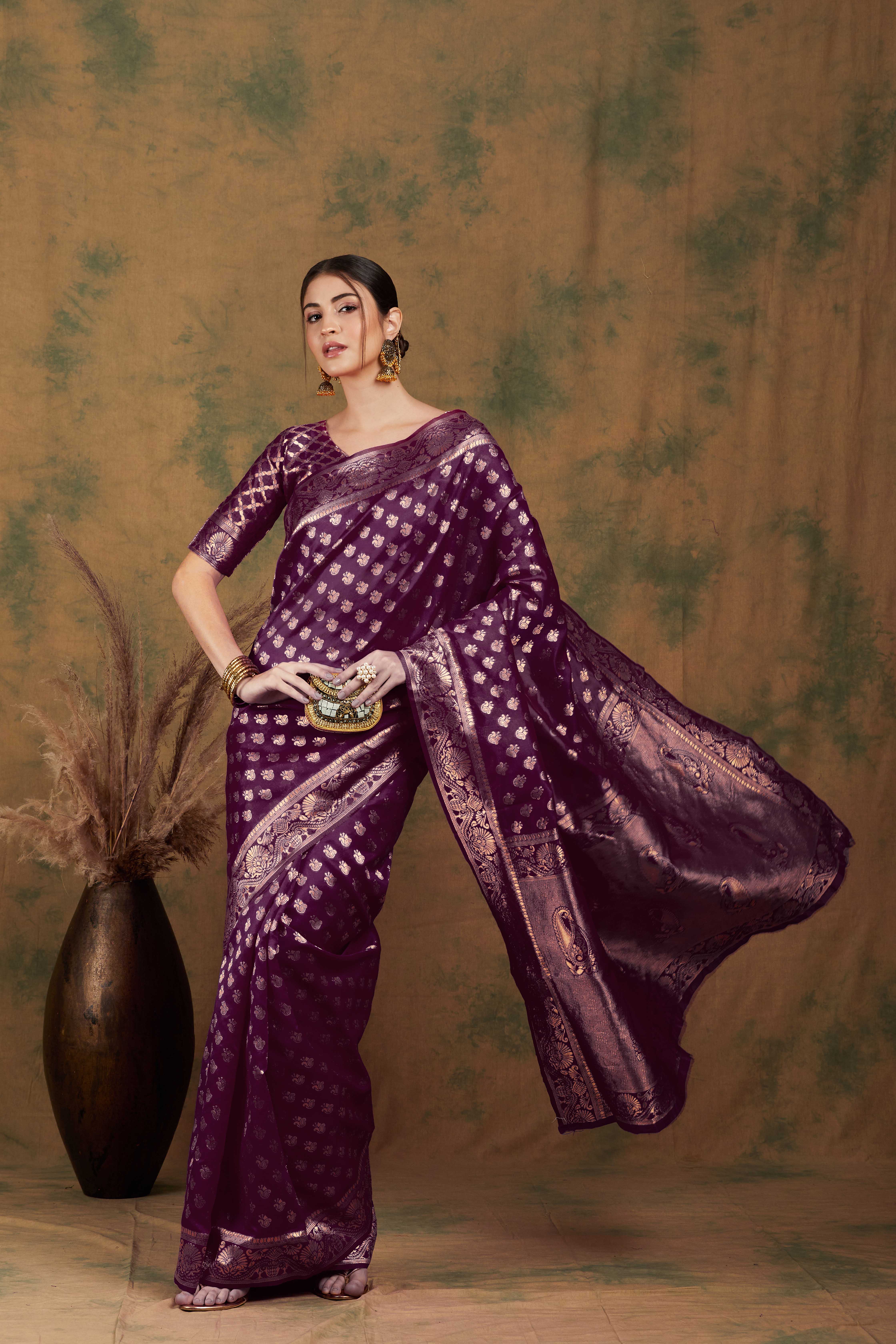 AASTHA FASHION Fashion Dream Womens Purple Kanjivaram Silk Saree | Soft & Elegant Traditional Wear