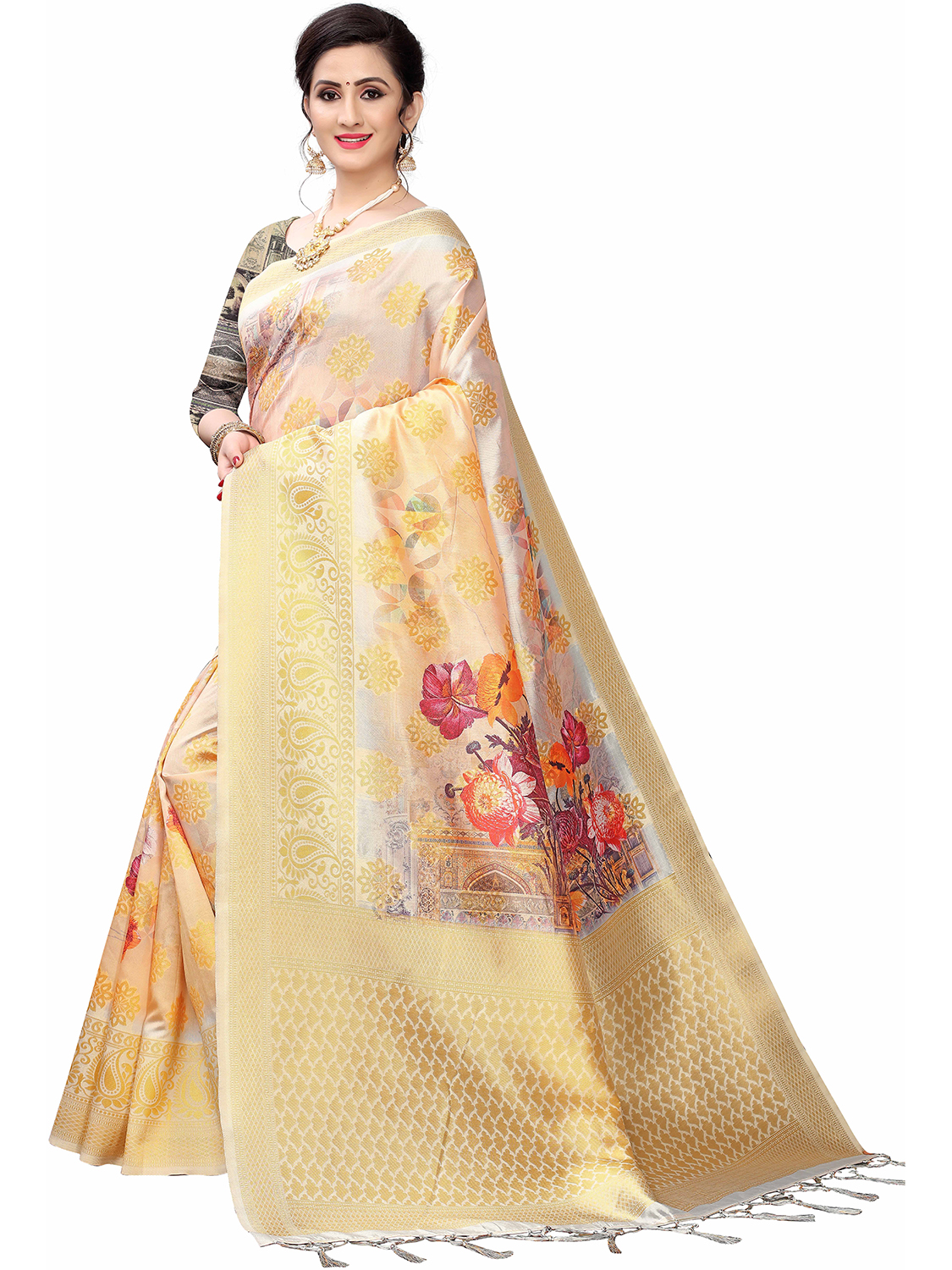 Saree Fabric-Cotton Silk Blend ,Blouse Fabric-Cotton Silk Blend