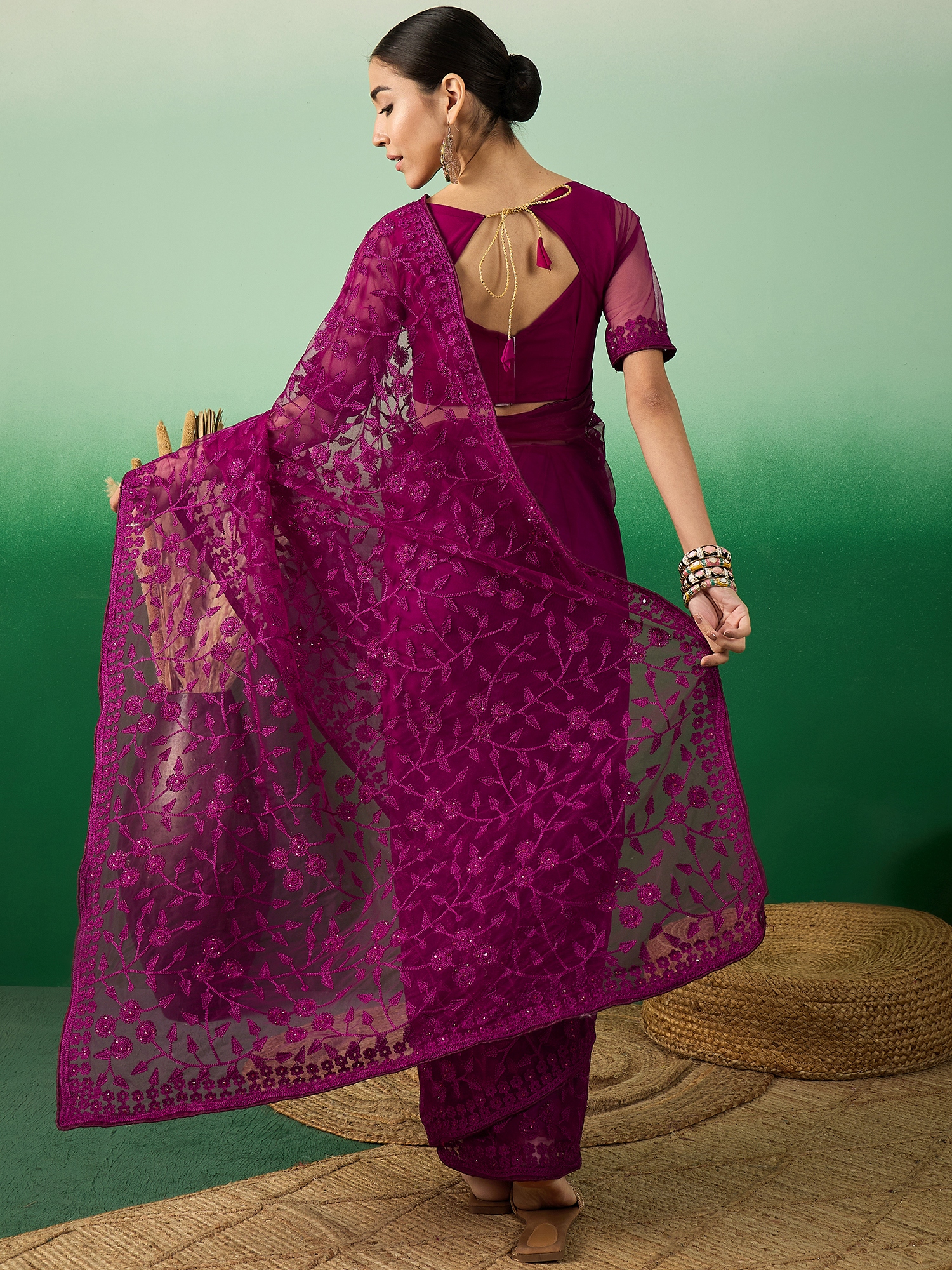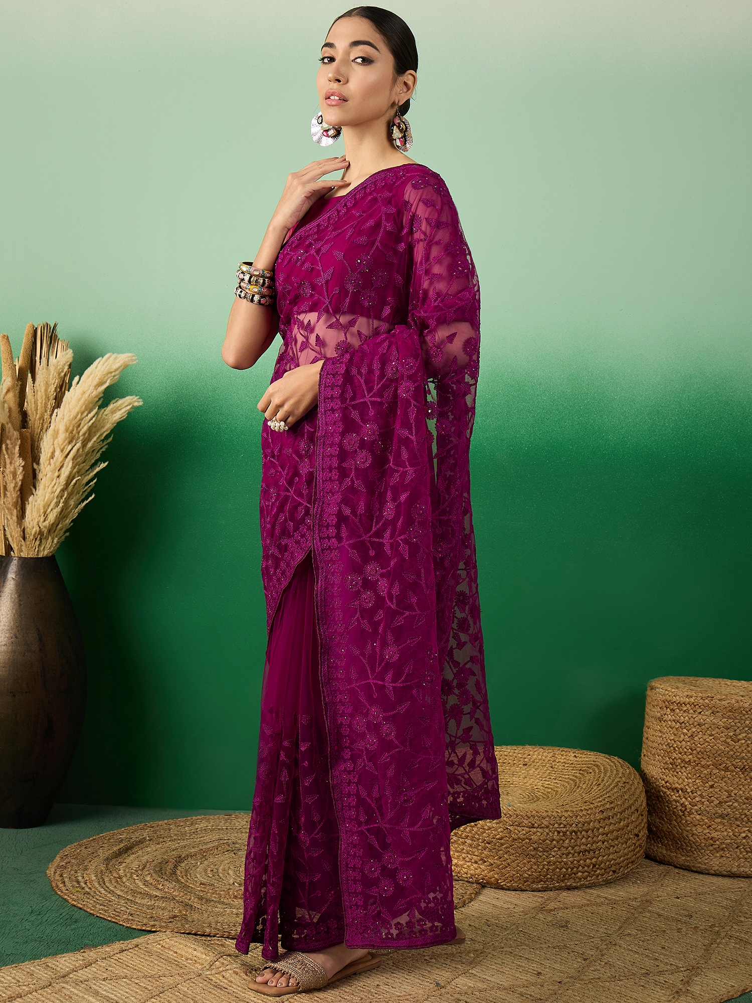 Saree Fabric-Net ,Blouse Fabric-Net