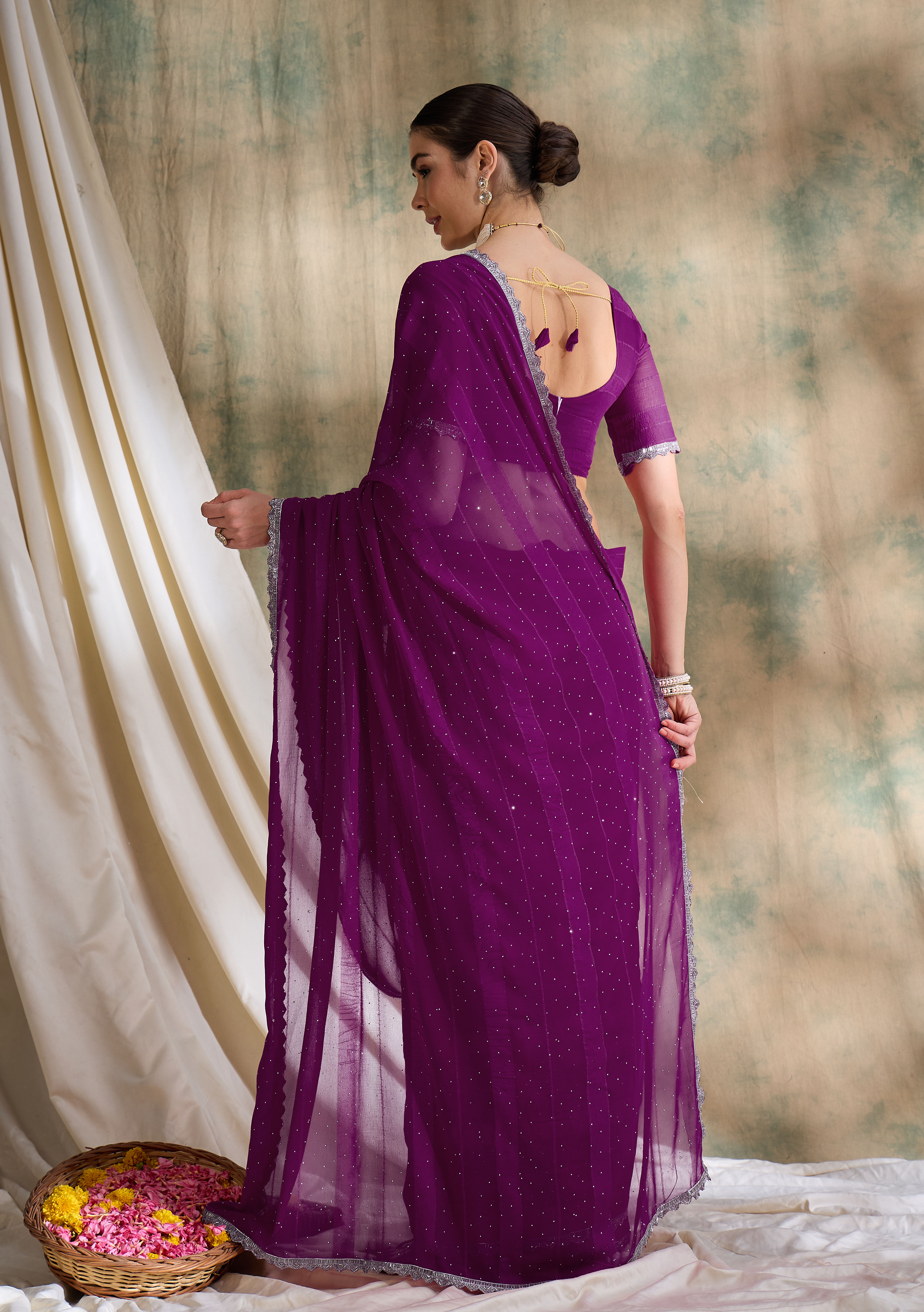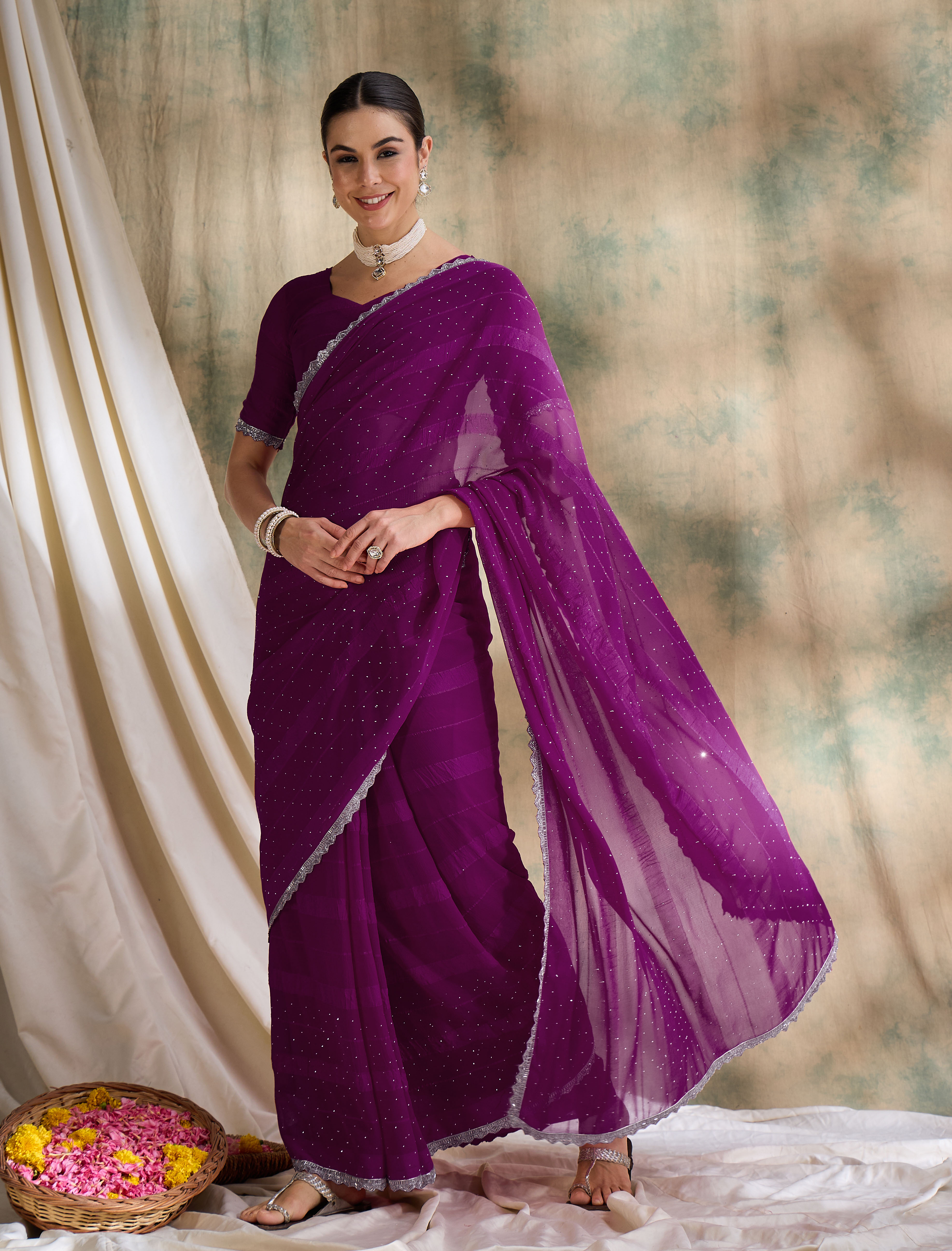 AASTHA FASHION Fashion Dream Womens Purple Vichitra Silk Saree | Soft & Elegant Traditional Wear