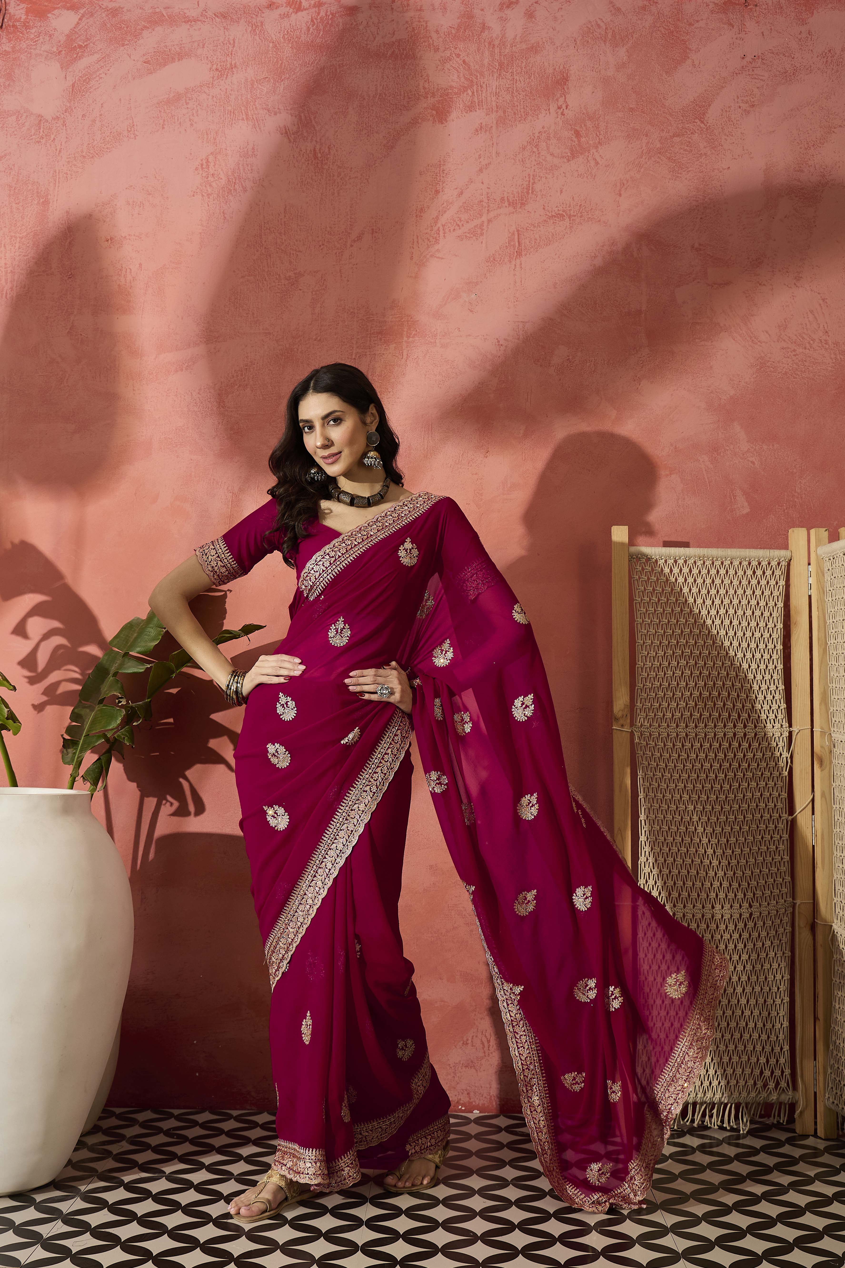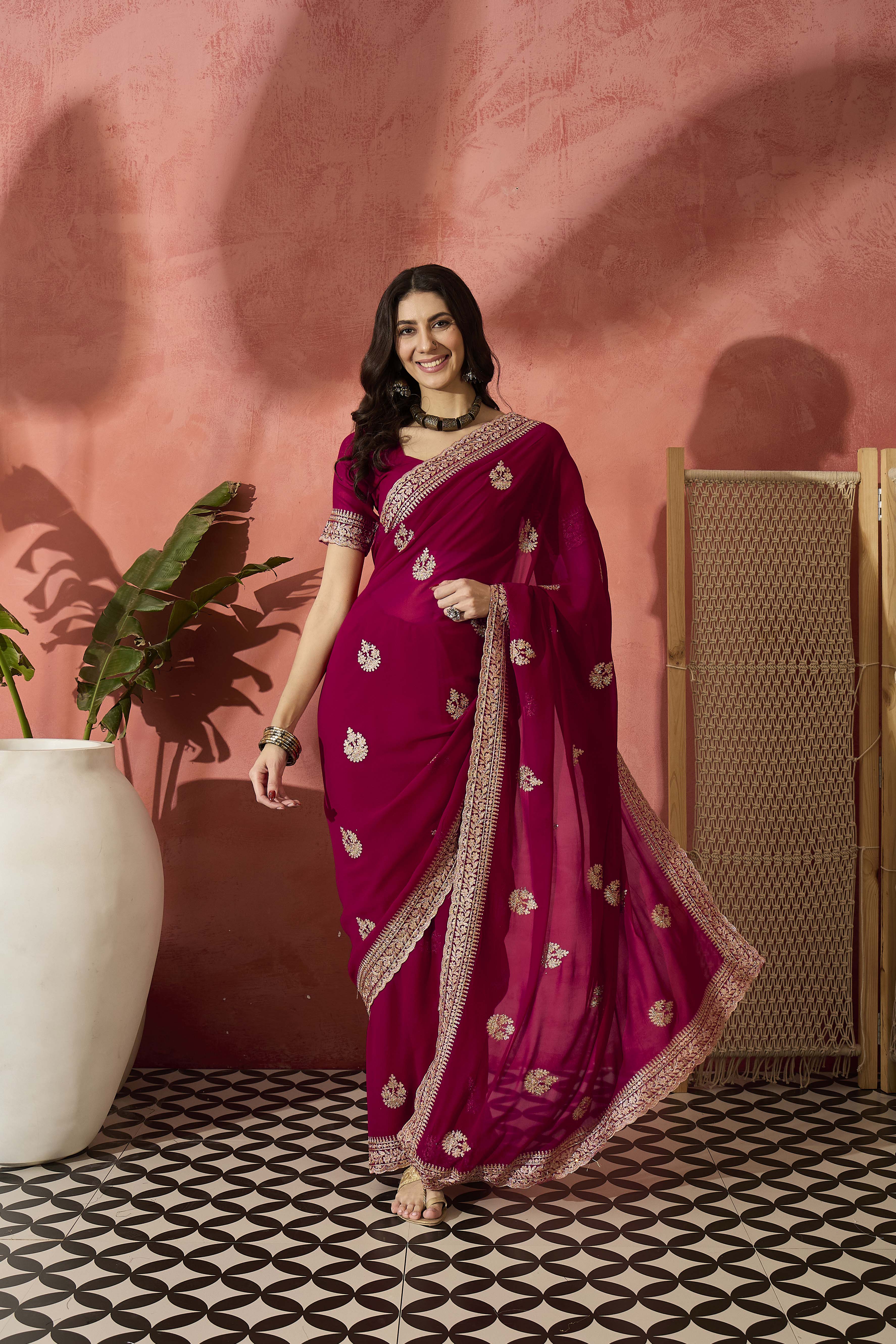 AASTHA FASHION Fashion Dream Womens Rani Georgette Saree | Soft & Elegant Traditional Wear