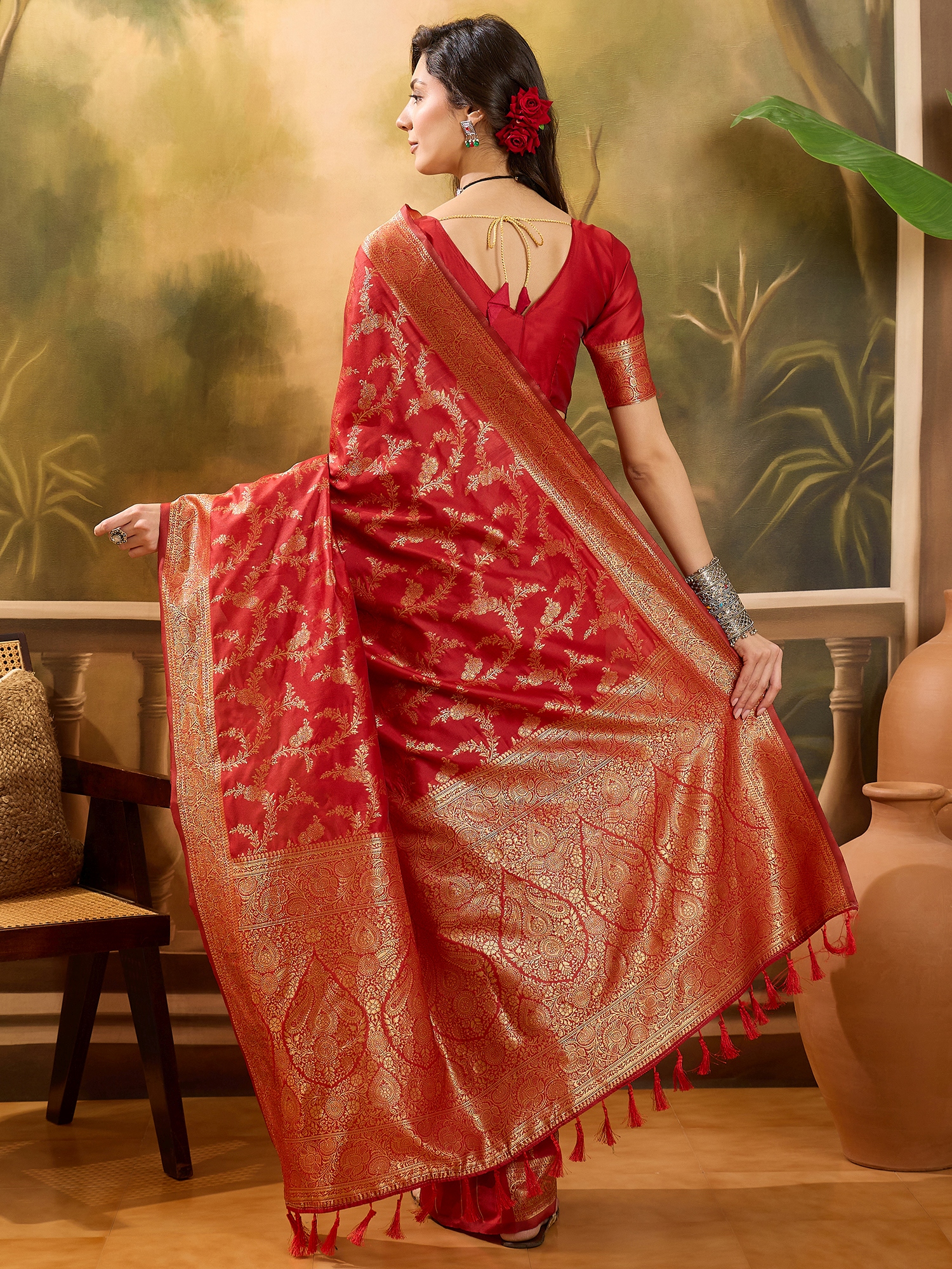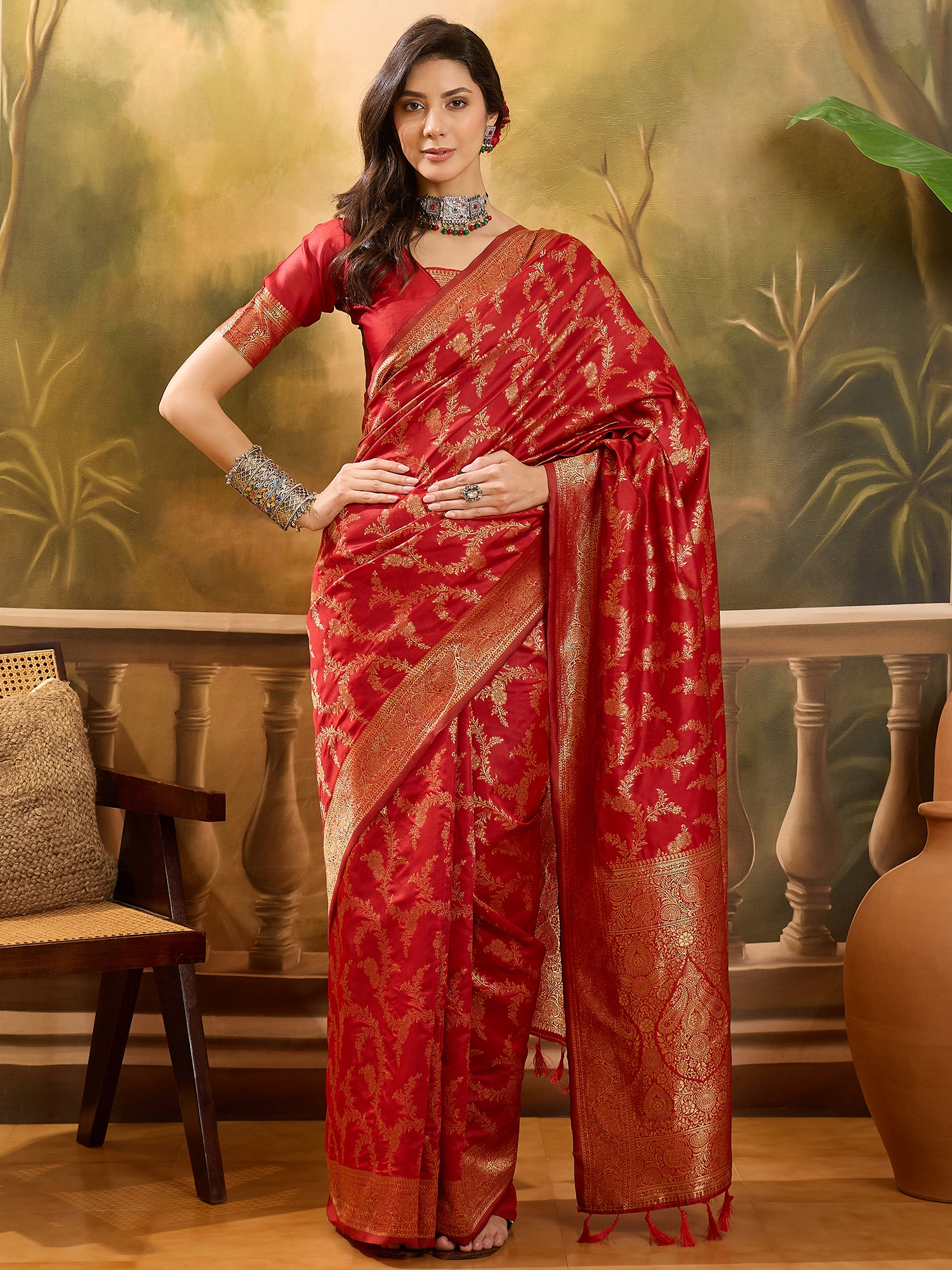 AASTHA FASHION Fashion Dream Womens Red Banarasi Jacquard Saree | Soft & Elegant Traditional Wear