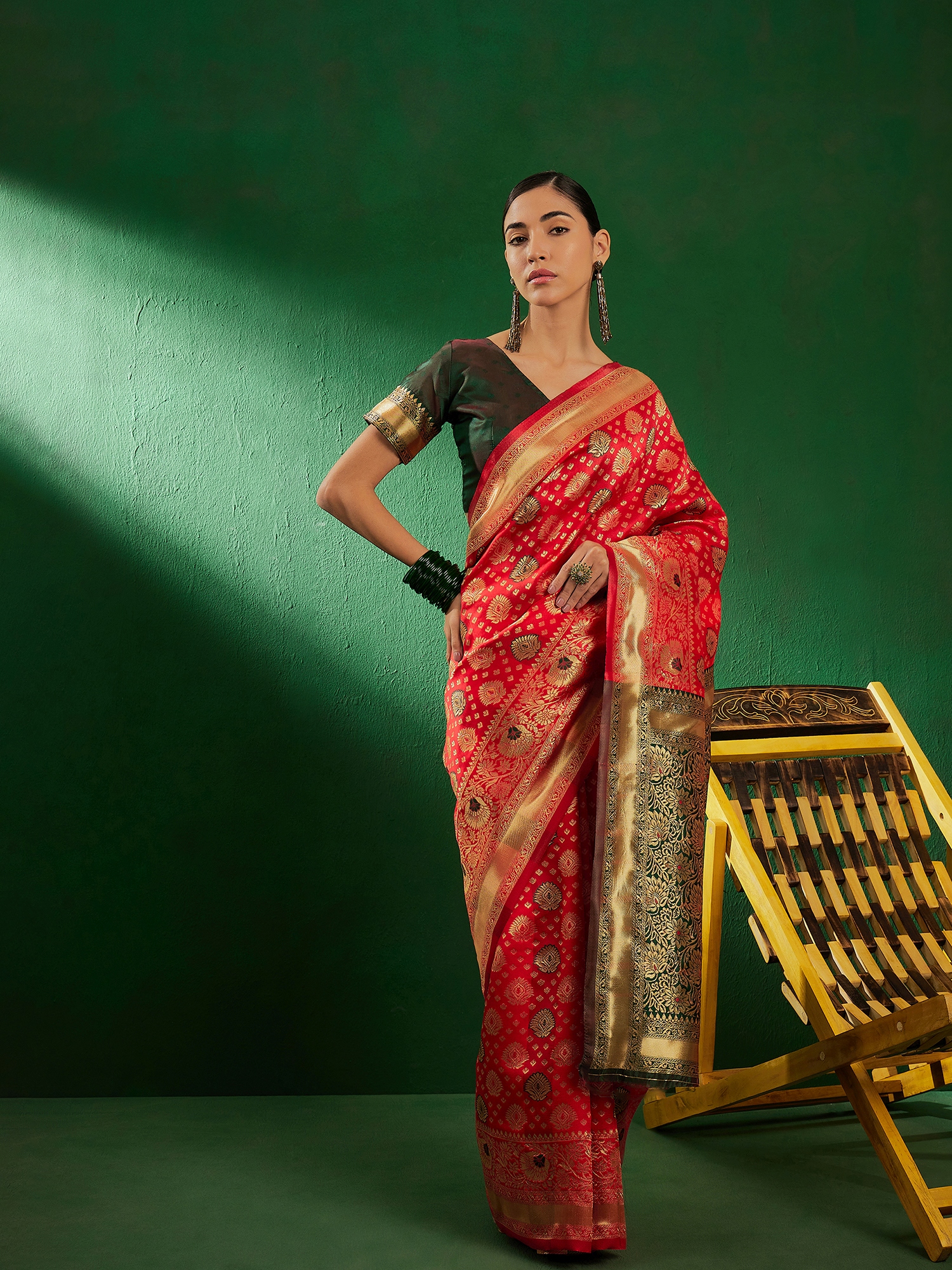 AASTHA FASHION Fashion Dream Womens Red Banarasi Silk Saree | Soft & Elegant Traditional Wear
