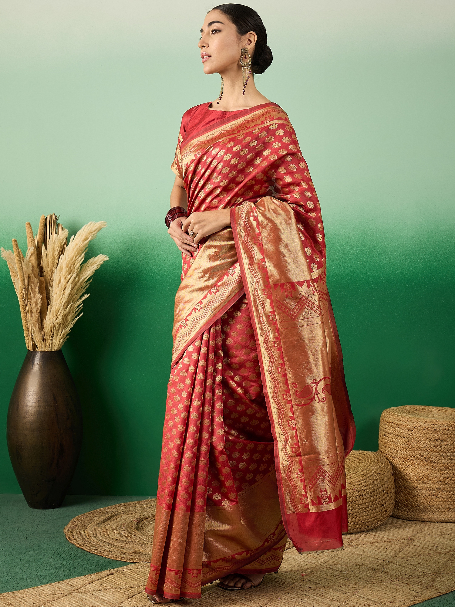 AASTHA FASHION Fashion Dream Womens RED Banarasi Silk Saree | Soft & Elegant Traditional Wear
