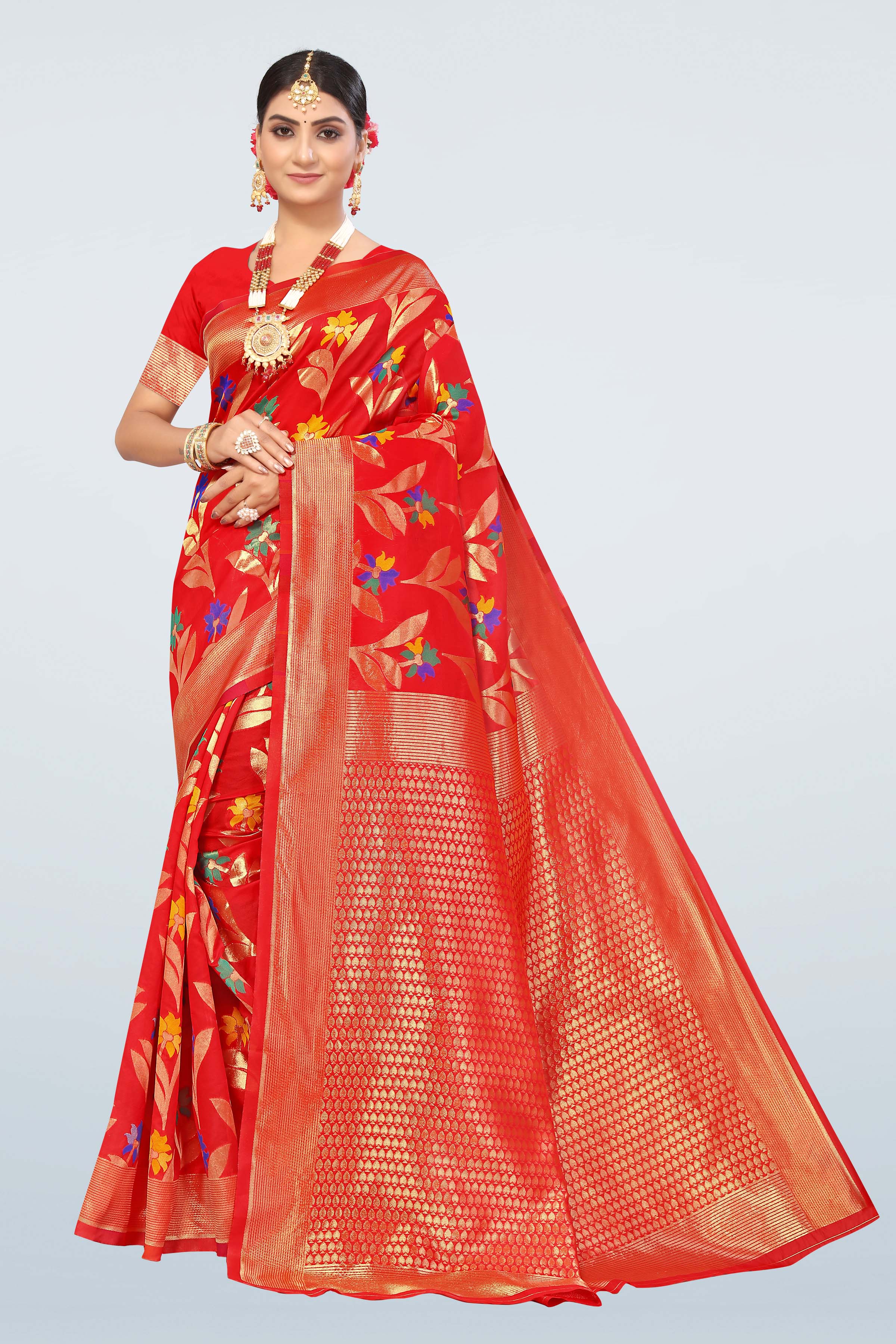 AASTHA FASHION Fashion Dream Womens Red Cotton Saree | Soft & Elegant Traditional Wear