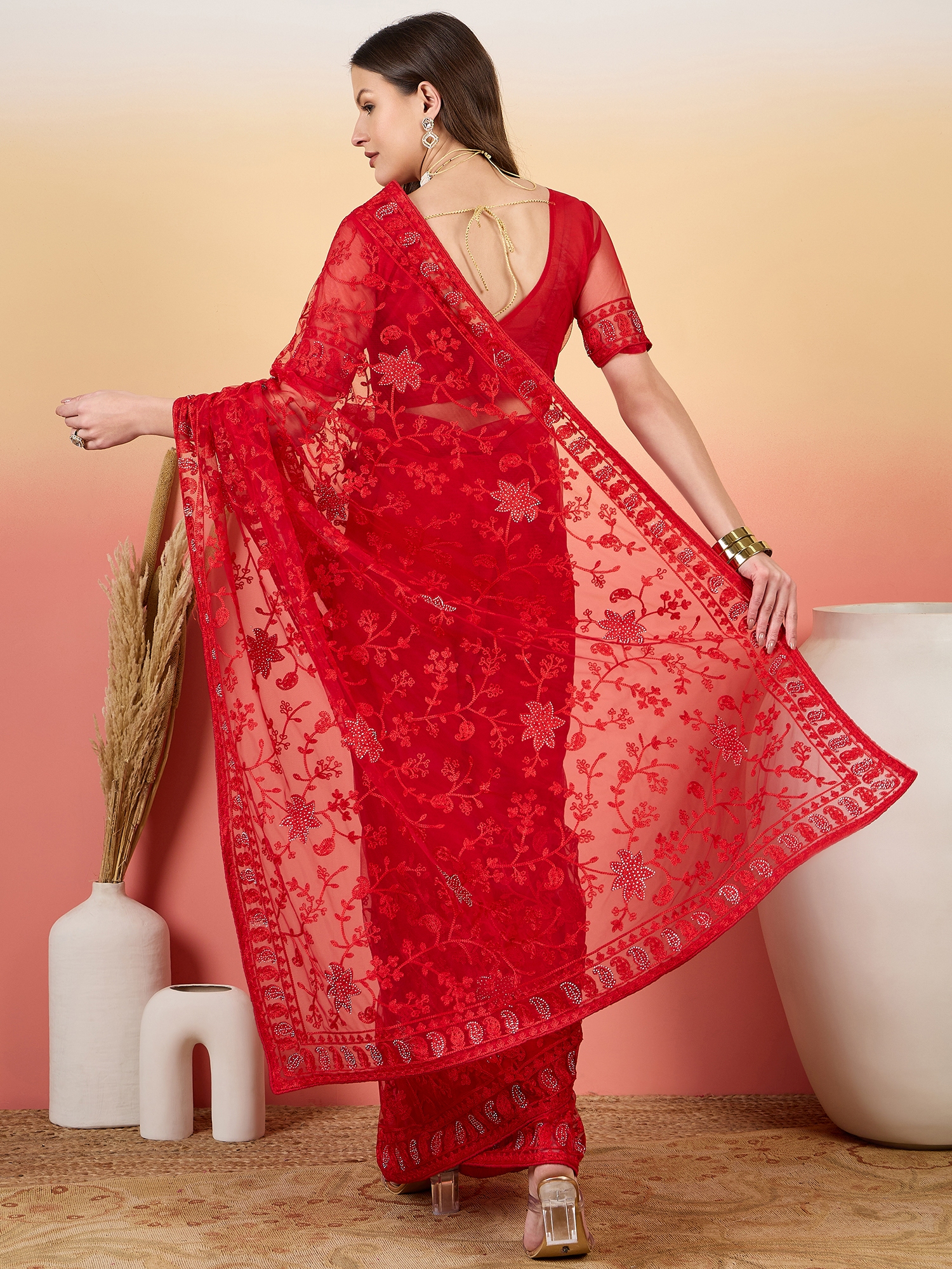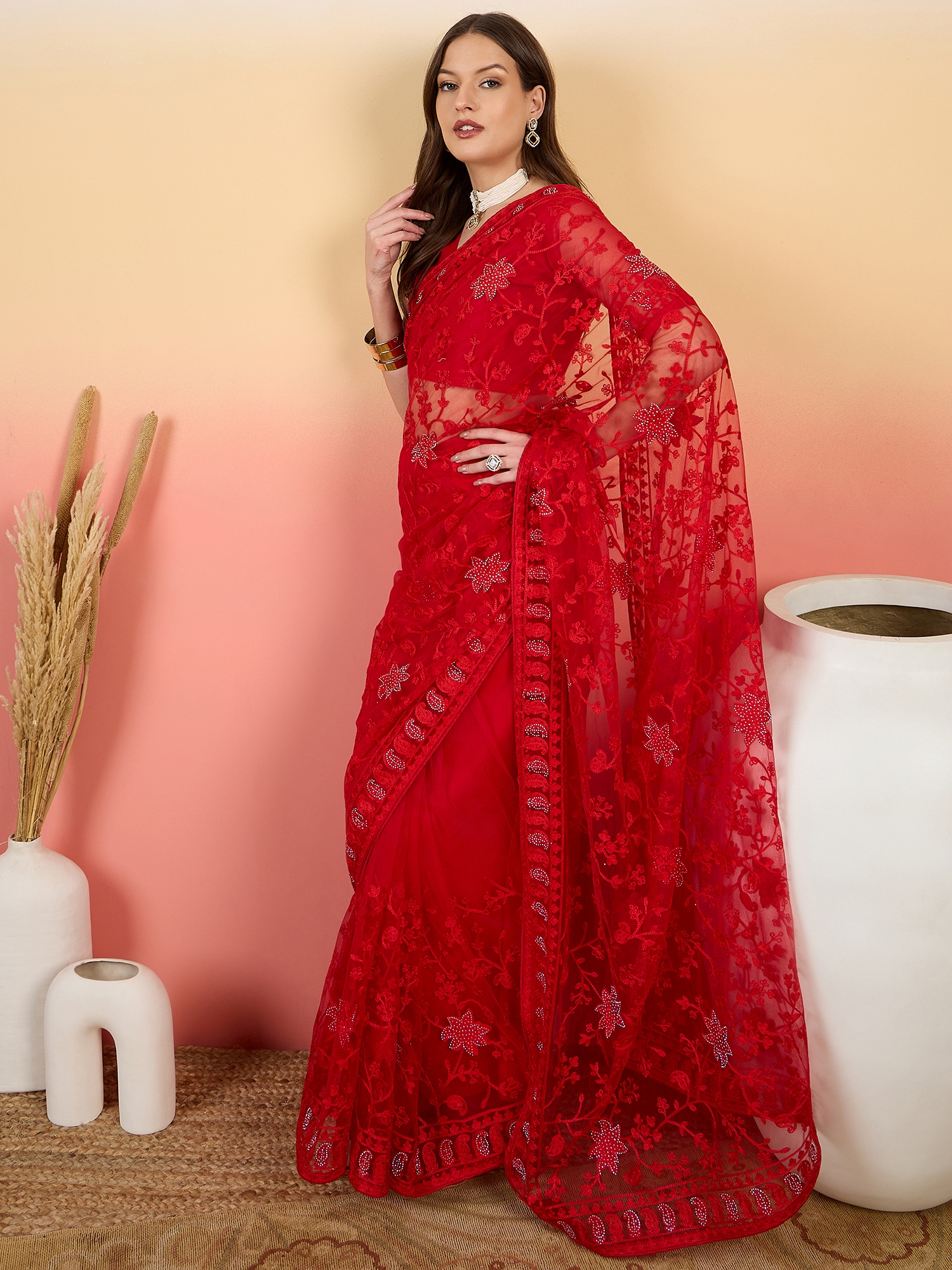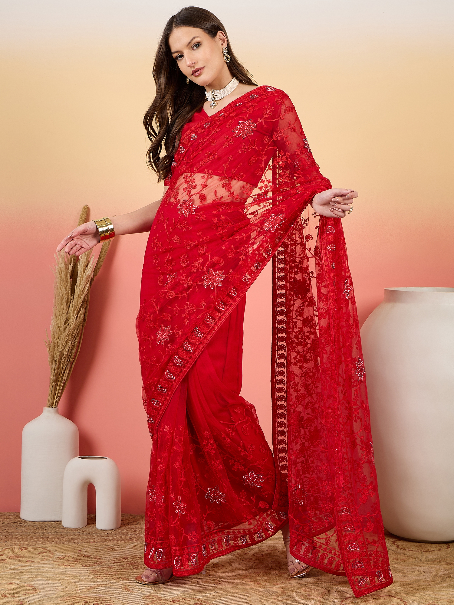 AASTHA FASHION Fashion Dream Womens Red Net Saree | Soft & Elegant Traditional Wear