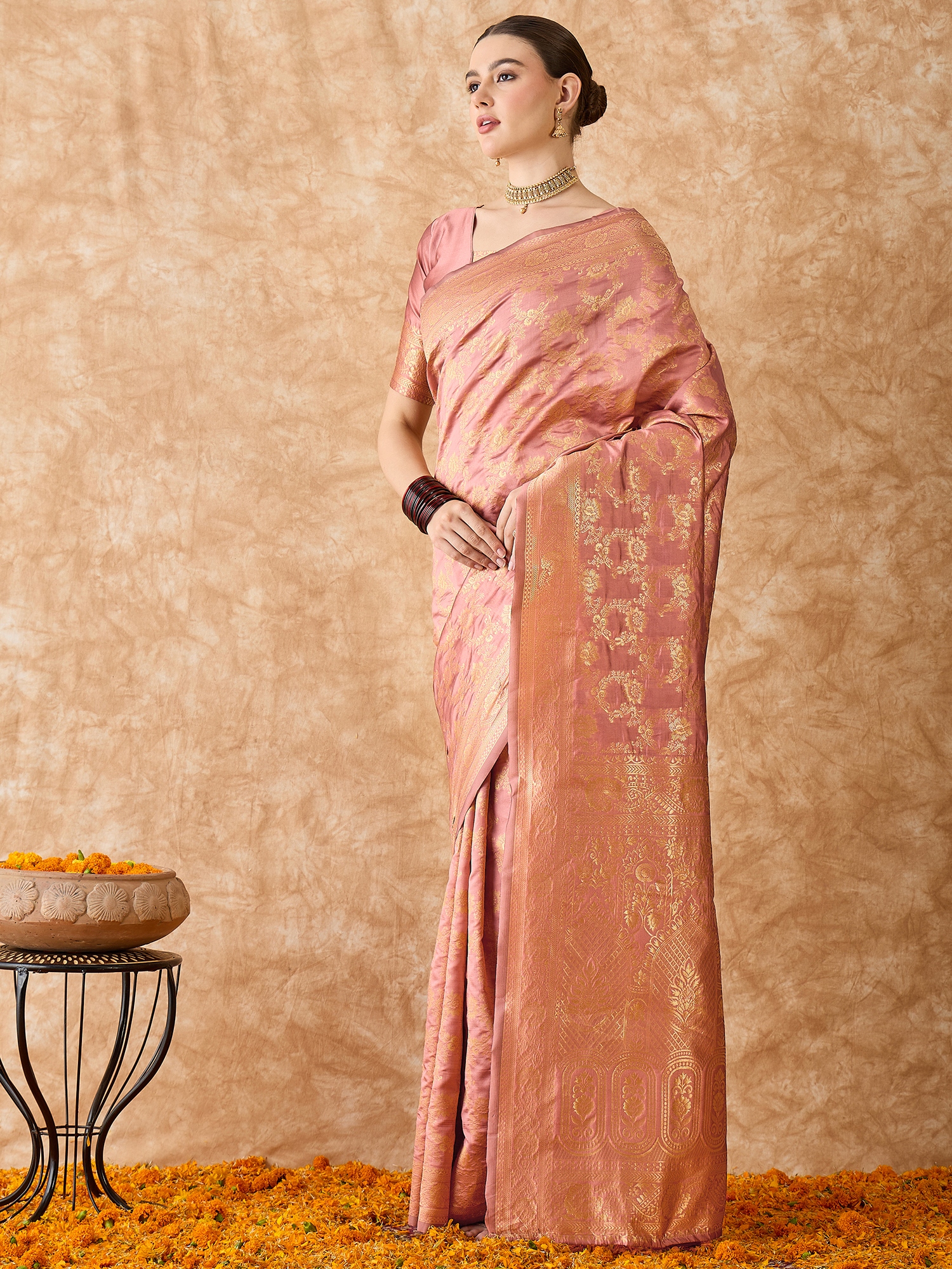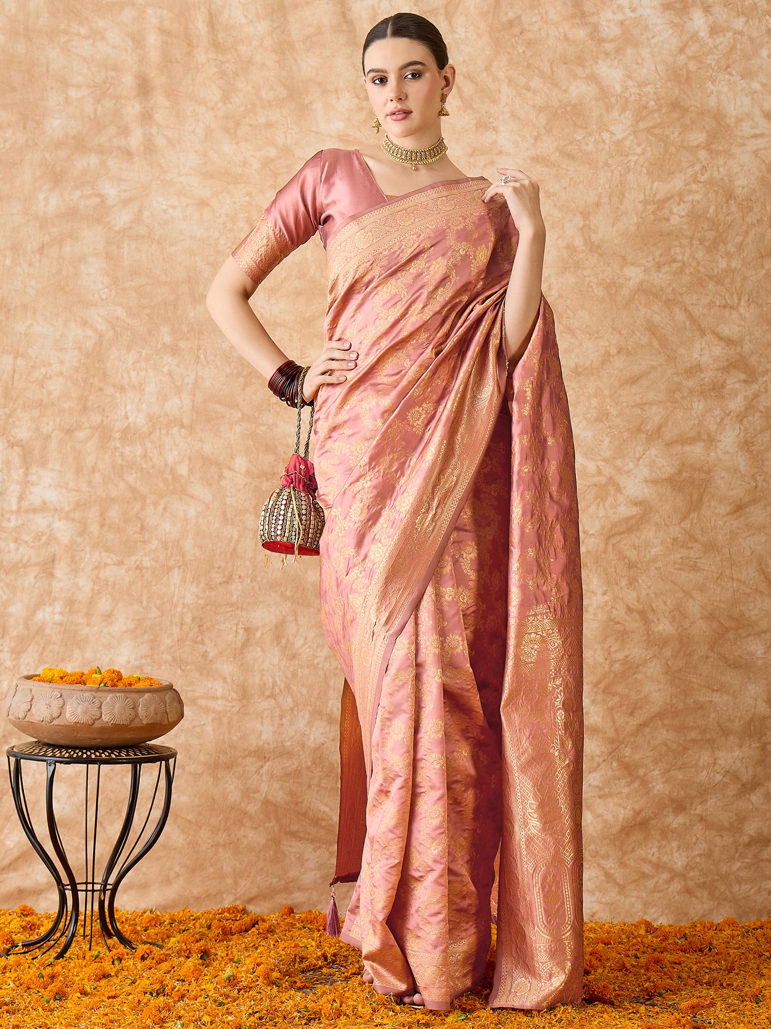 AASTHA FASHION Fashion Dream Womens Rose Gold Banarasi Silk Saree | Soft & Elegant Traditional Wear
