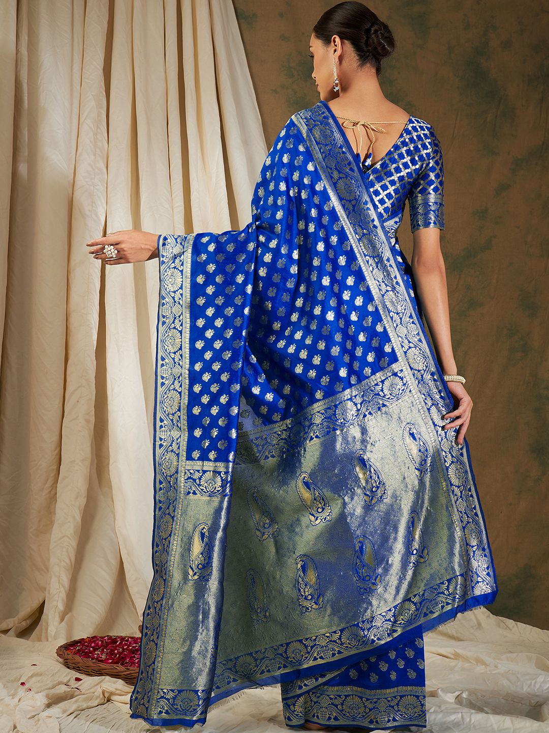 AASTHA FASHION Fashion Dream Womens Royal Blue Kanjivaram Silk Saree | Soft & Elegant Traditional Wear