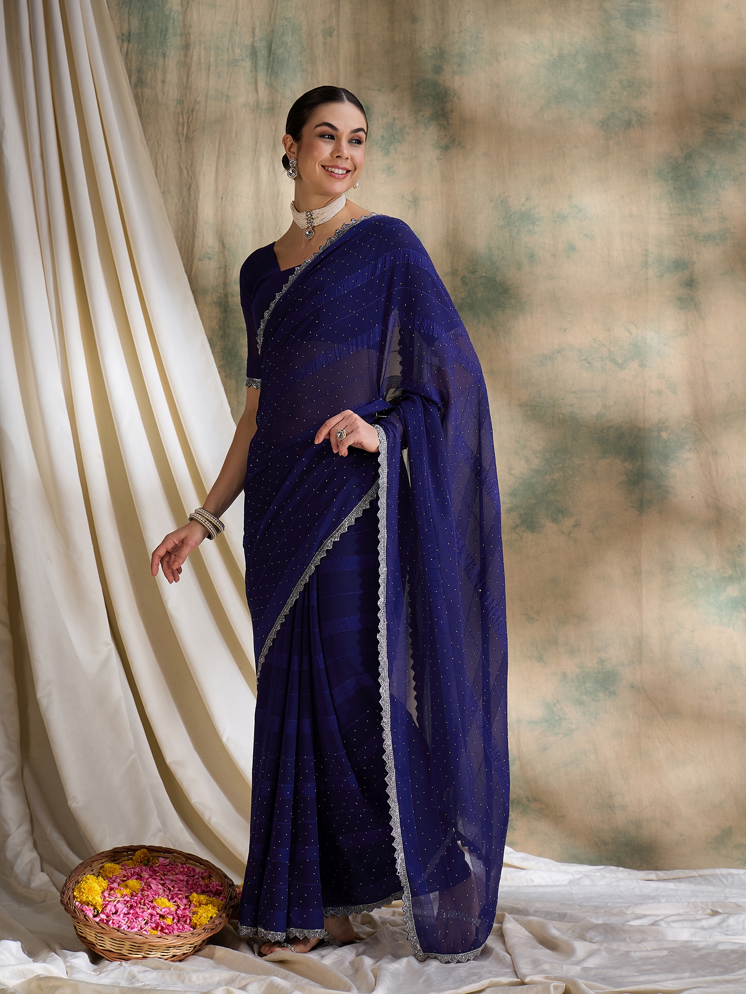 AASTHA FASHION Fashion Dream Womens Royal Blue Vichitra Silk Saree | Soft & Elegant Traditional Wear