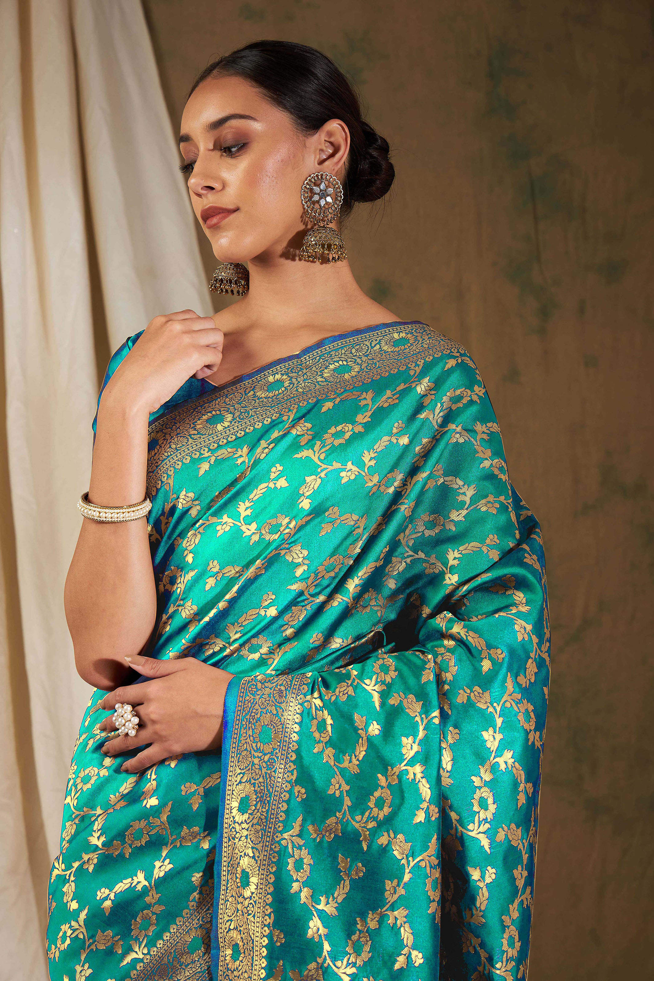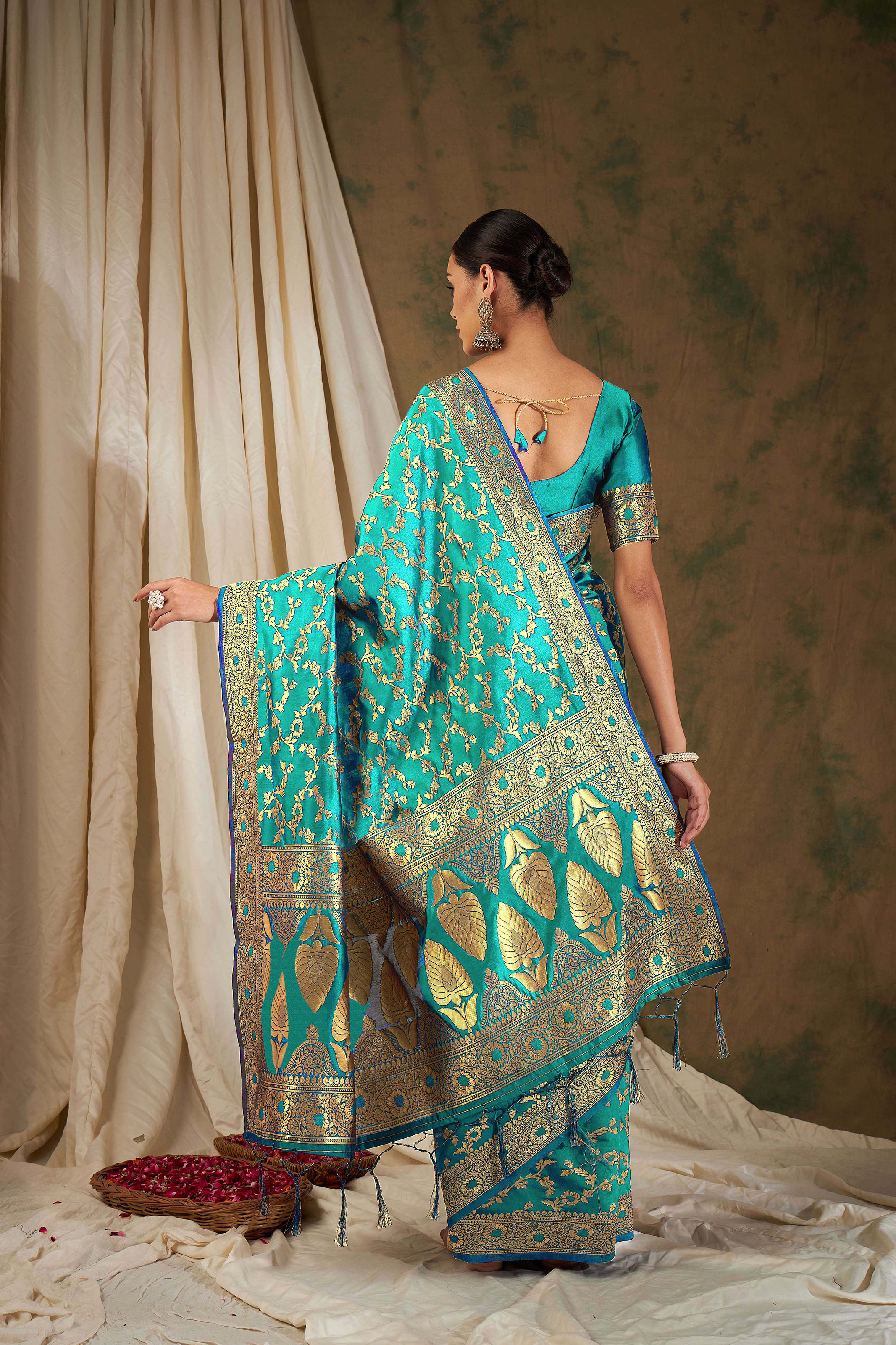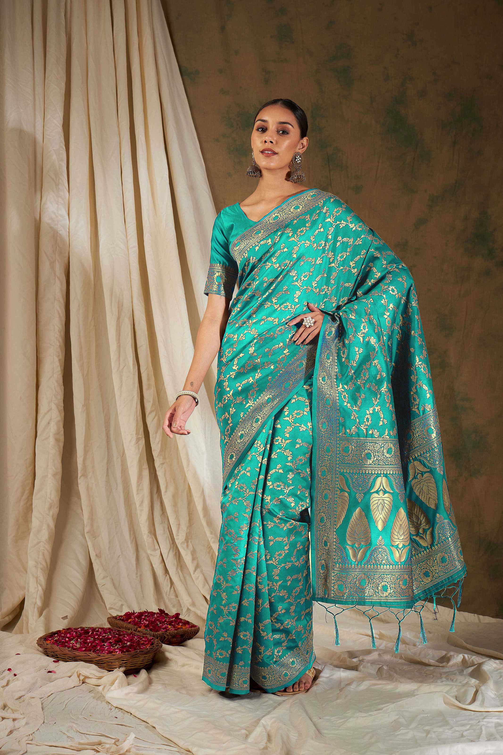 AASTHA FASHION Fashion Dream Womens Sea Green Banarasi Silk Saree | Soft & Elegant Traditional Wear