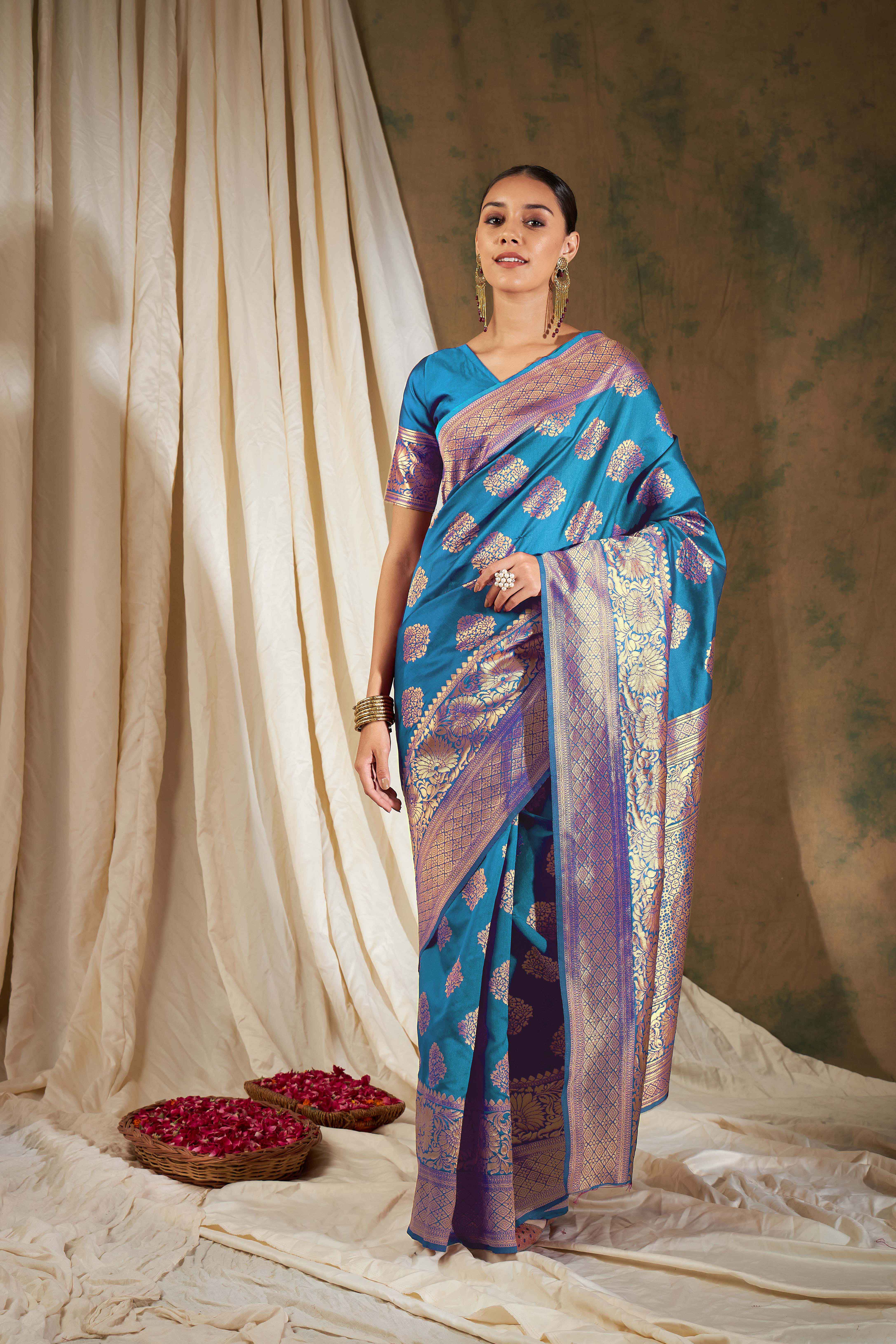 AASTHA FASHION Fashion Dream Womens SKY BLUE Banarasi Silk Saree | Soft & Elegant Traditional Wear