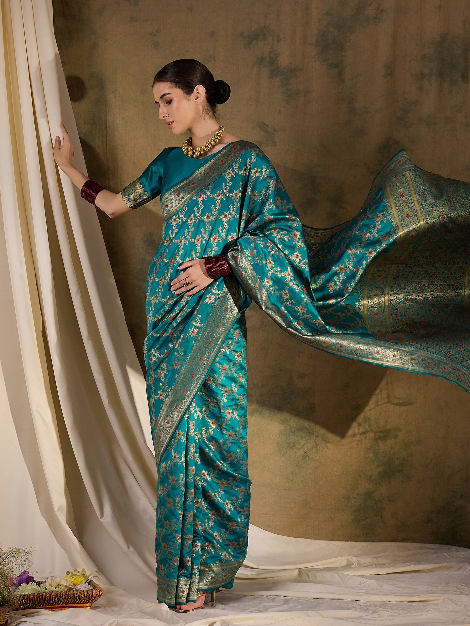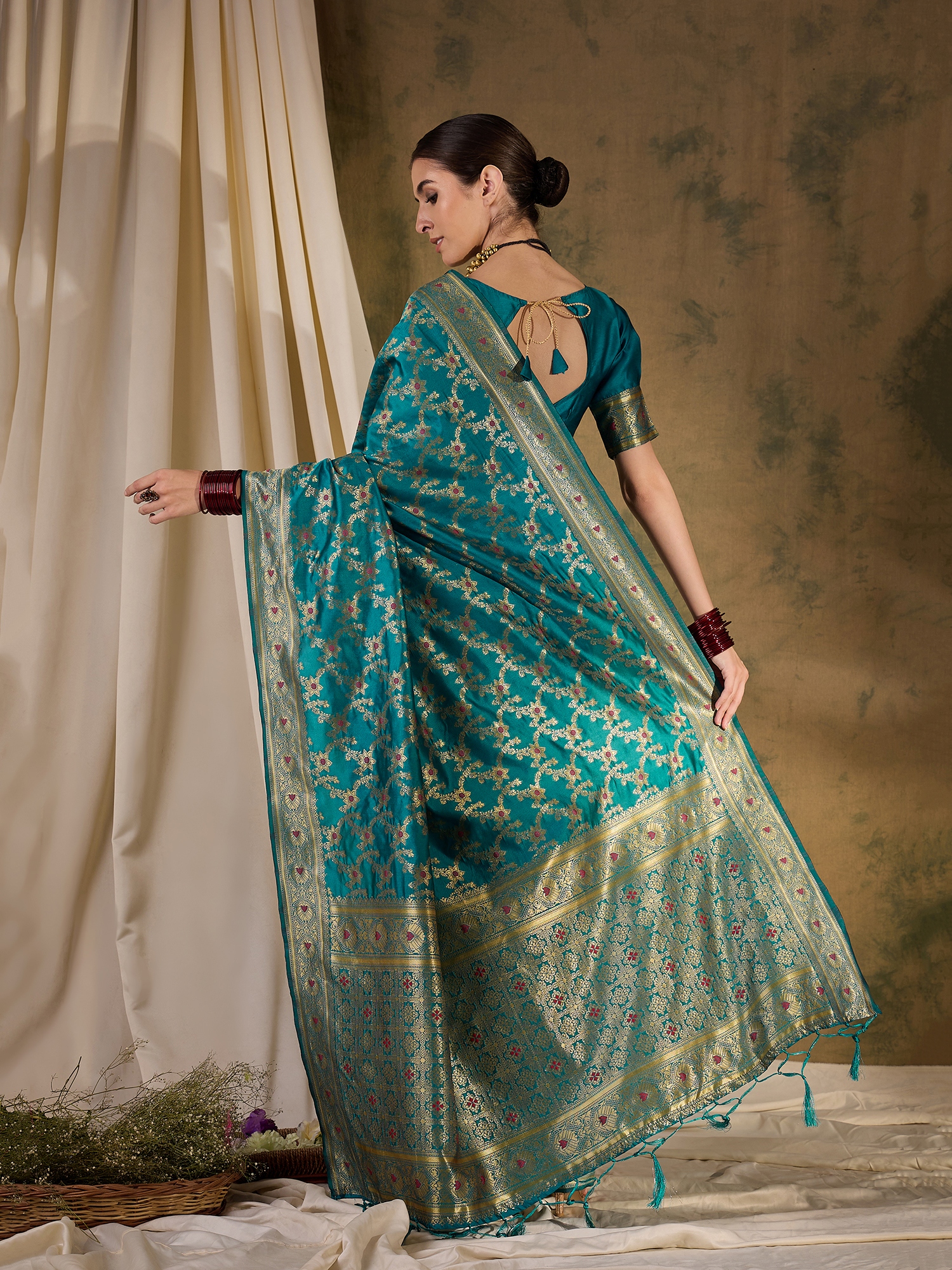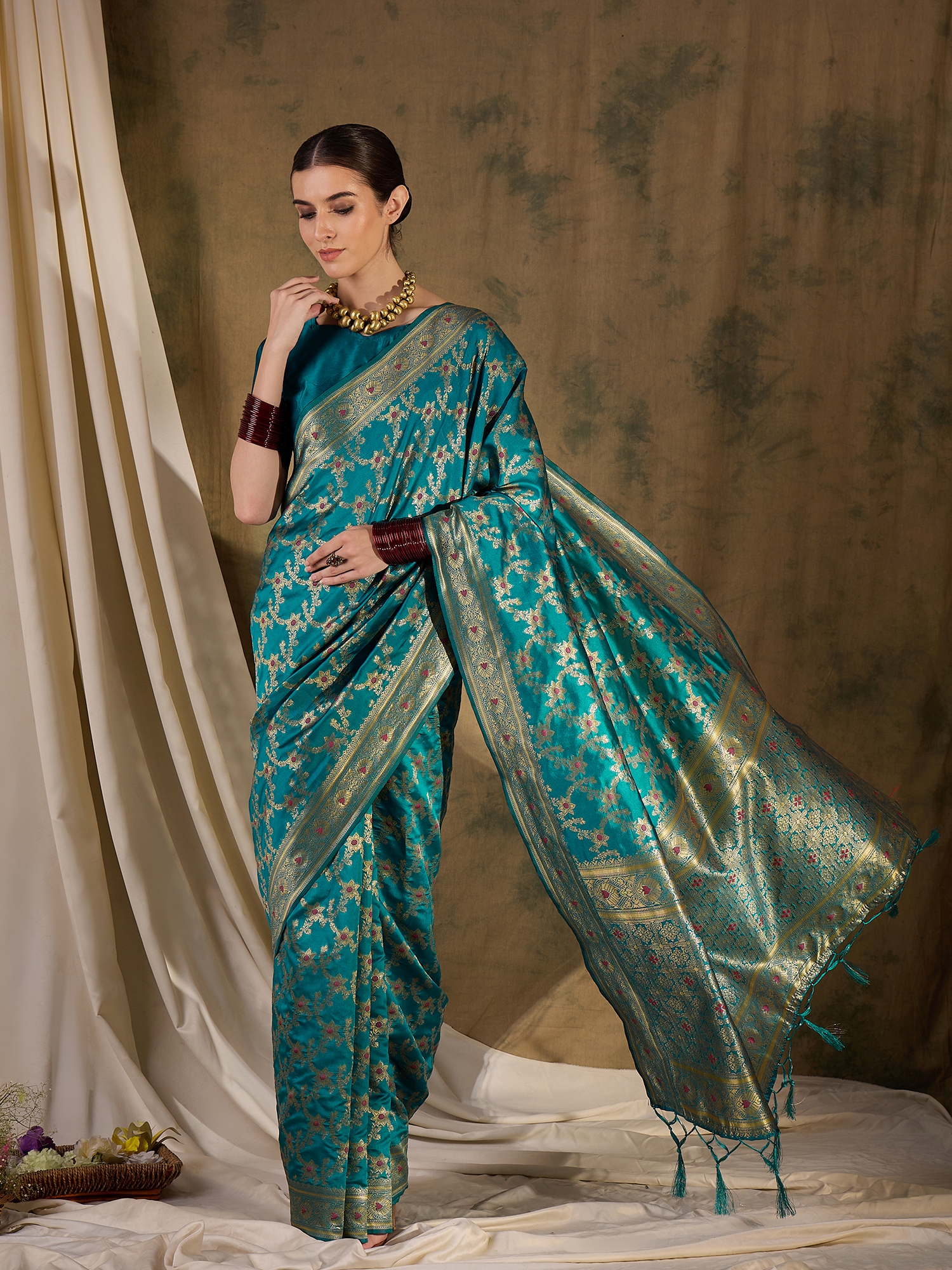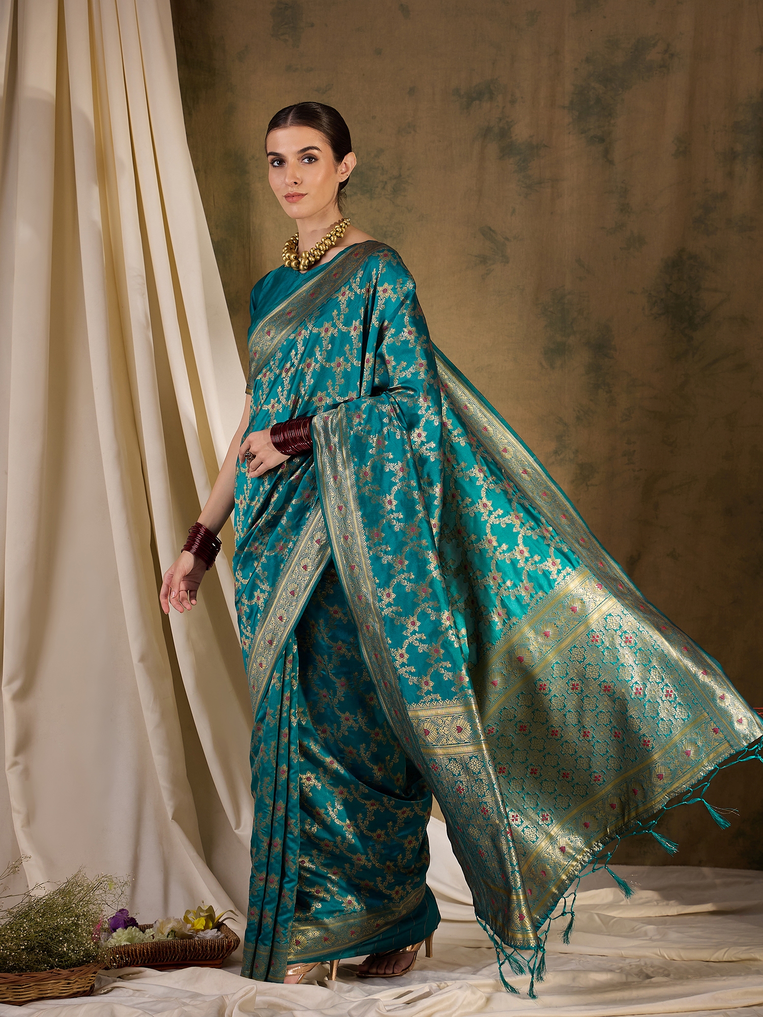 AASTHA FASHION Fashion Dream Womens Teal Banarasi Silk Saree | Soft & Elegant Traditional Wear