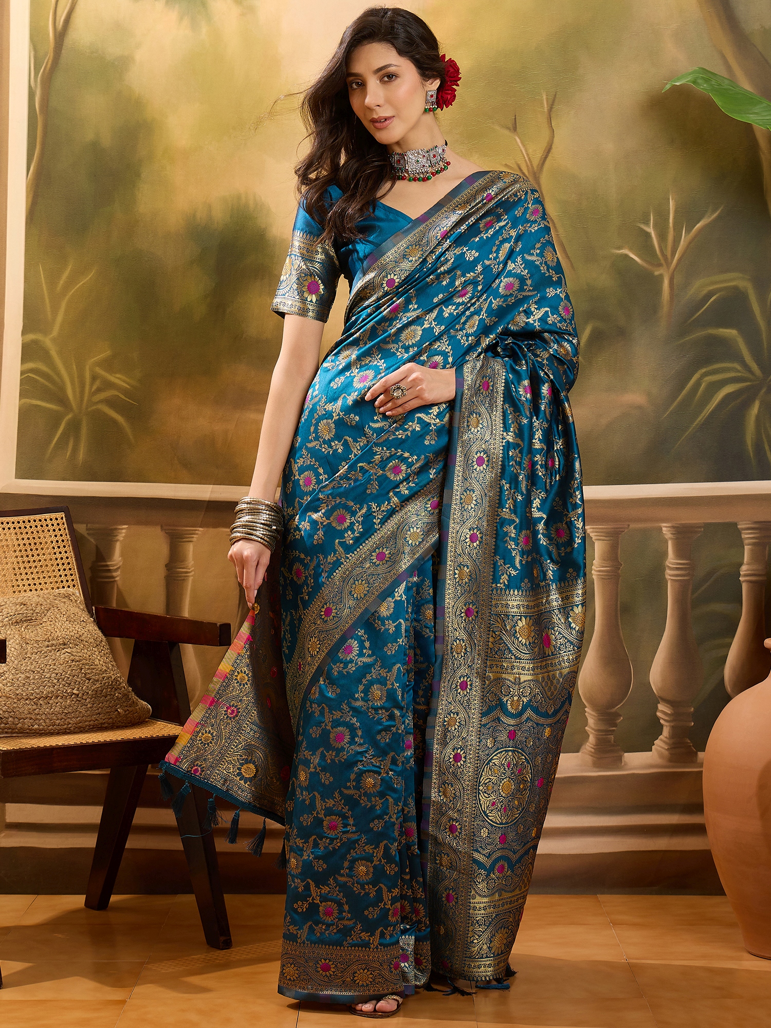 Saree Fabric-Banarasi Jacquard ,Blouse Fabric-Banarasi Jacquard