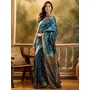AASTHA FASHION Fashion Dream Womens Teal Blue Banarasi Jacquard Saree | Soft & Elegant Traditional Wear