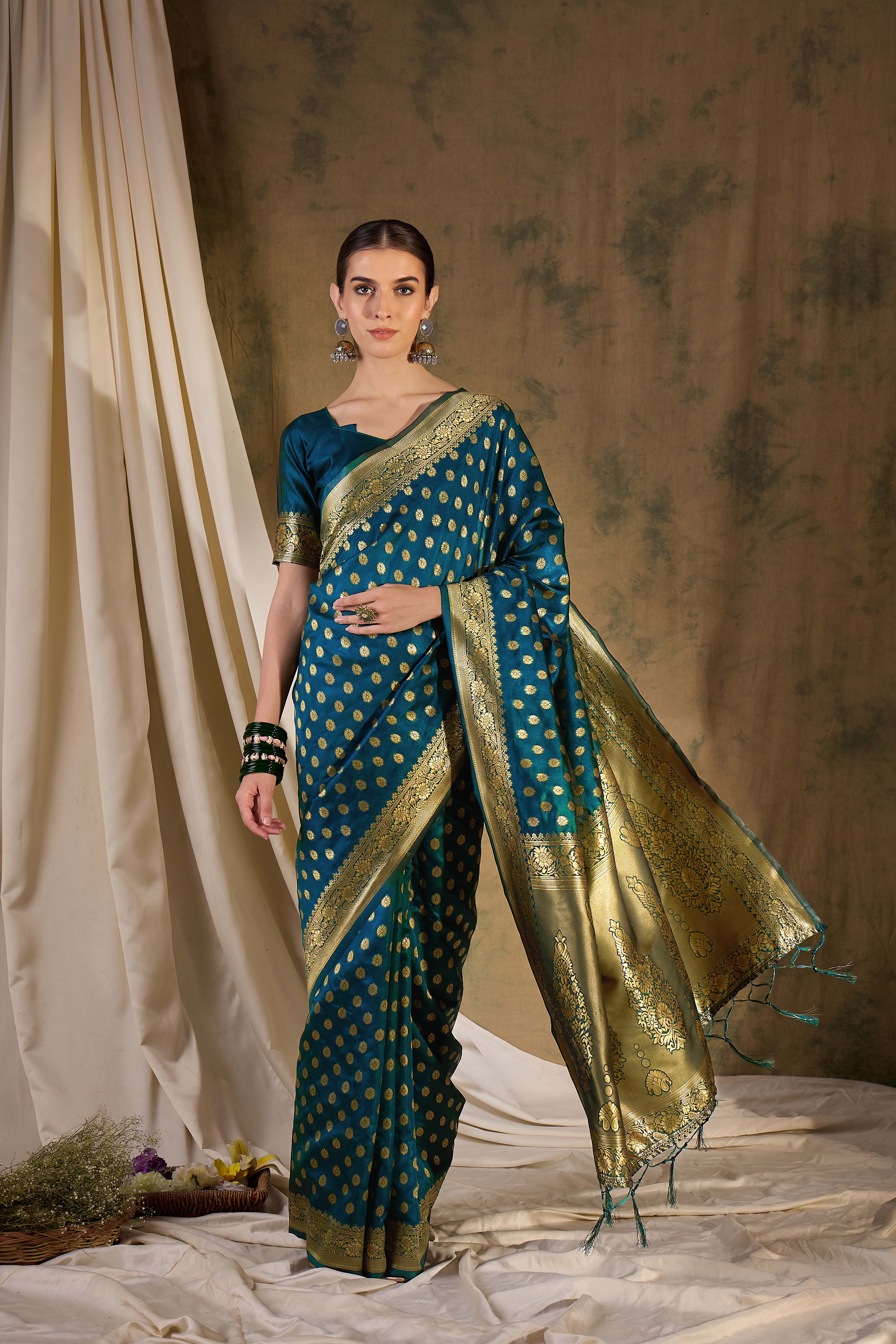 AASTHA FASHION Fashion Dream Womens Teal Blue Banarasi Silk Saree | Soft & Elegant Traditional Wear