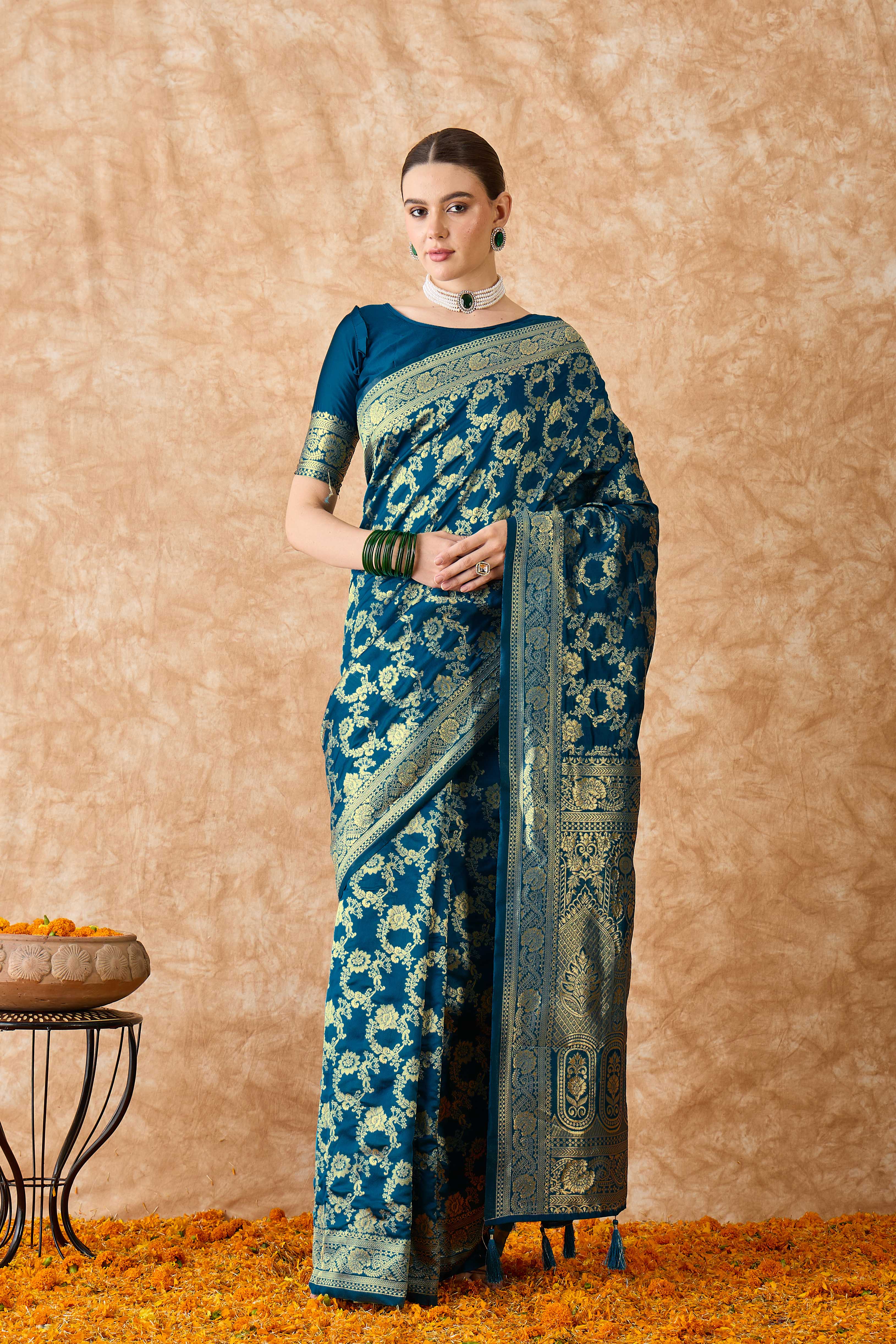 AASTHA FASHION Fashion Dream Womens Teal Blue Banarasi Silk Saree | Soft & Elegant Traditional Wear