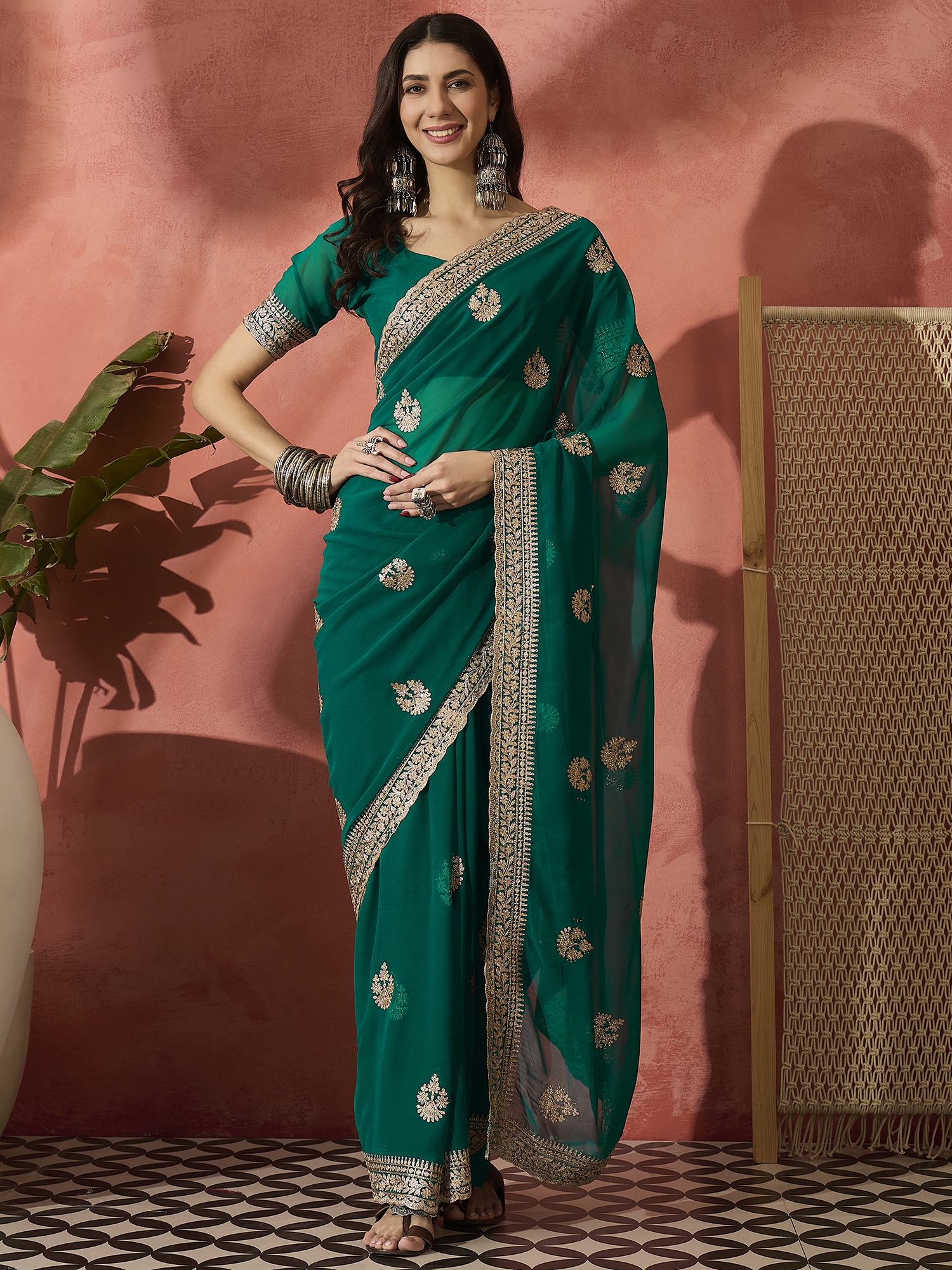 AASTHA FASHION Fashion Dream Womens Teal Georgette Saree | Soft & Elegant Traditional Wear