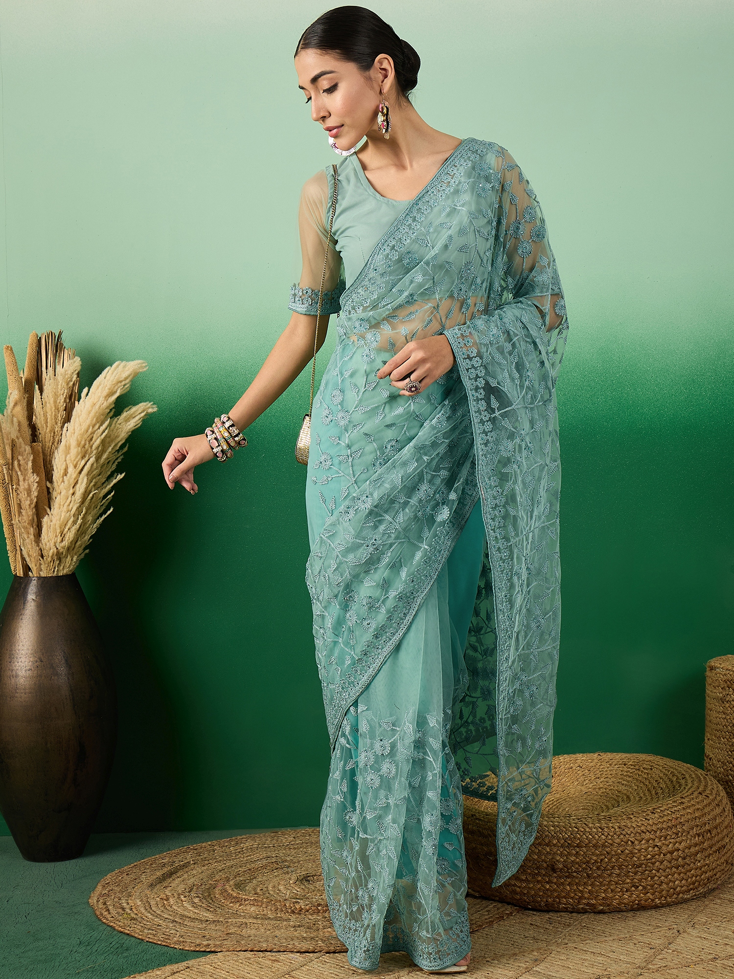 AASTHA FASHION Fashion Dream Womens Teal Net Saree | Soft & Elegant Traditional Wear