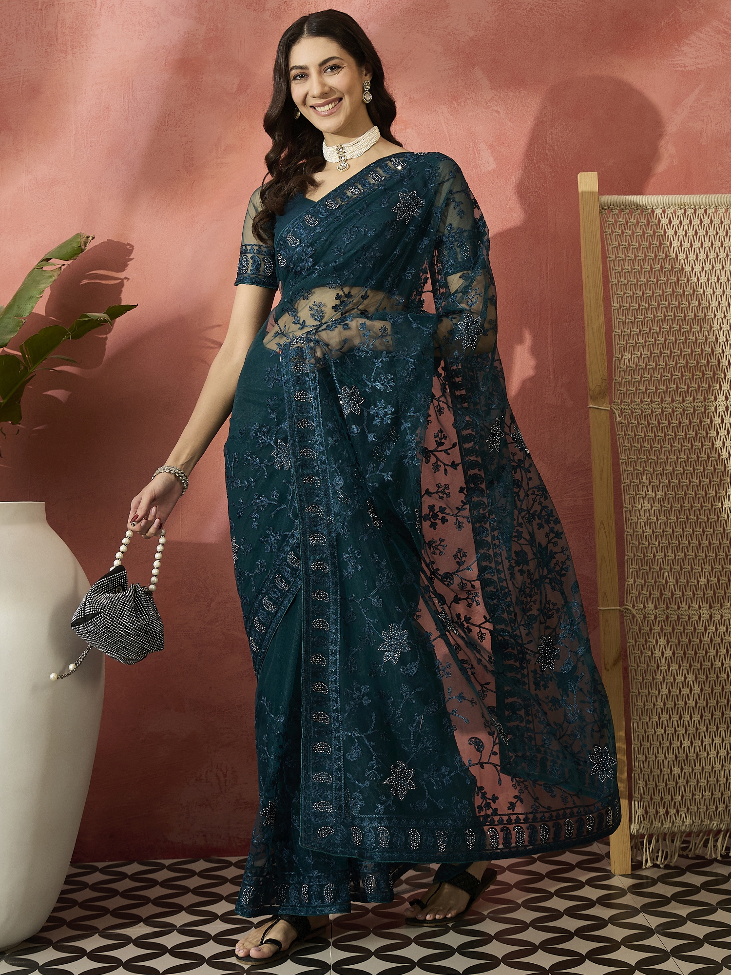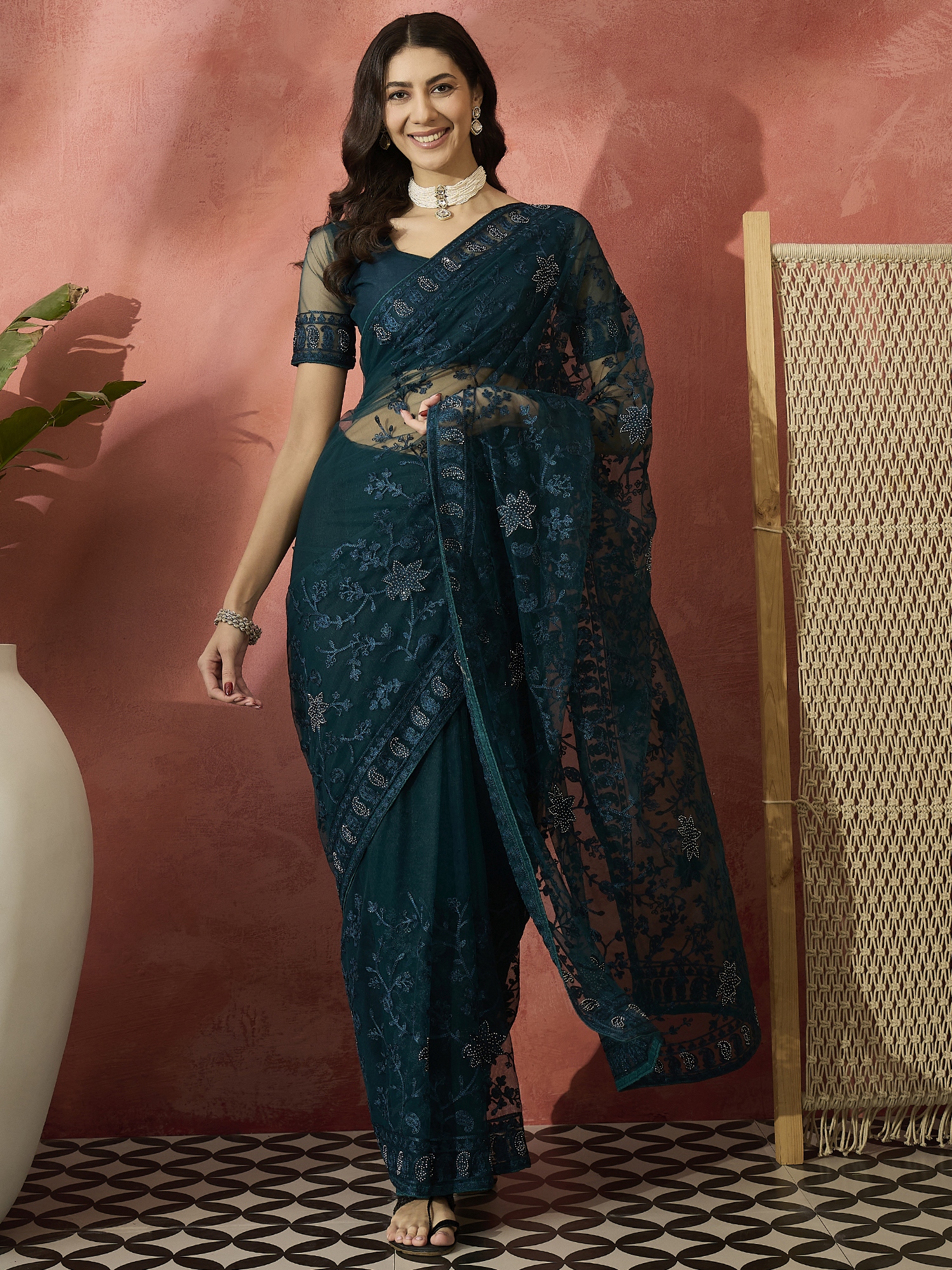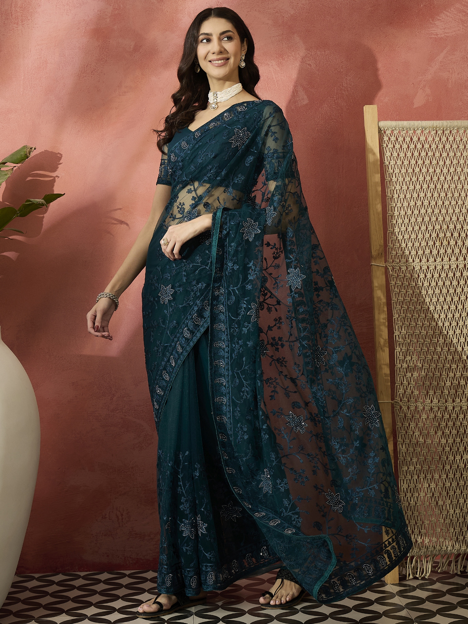 Saree Fabric-Net ,Blouse Fabric-Net