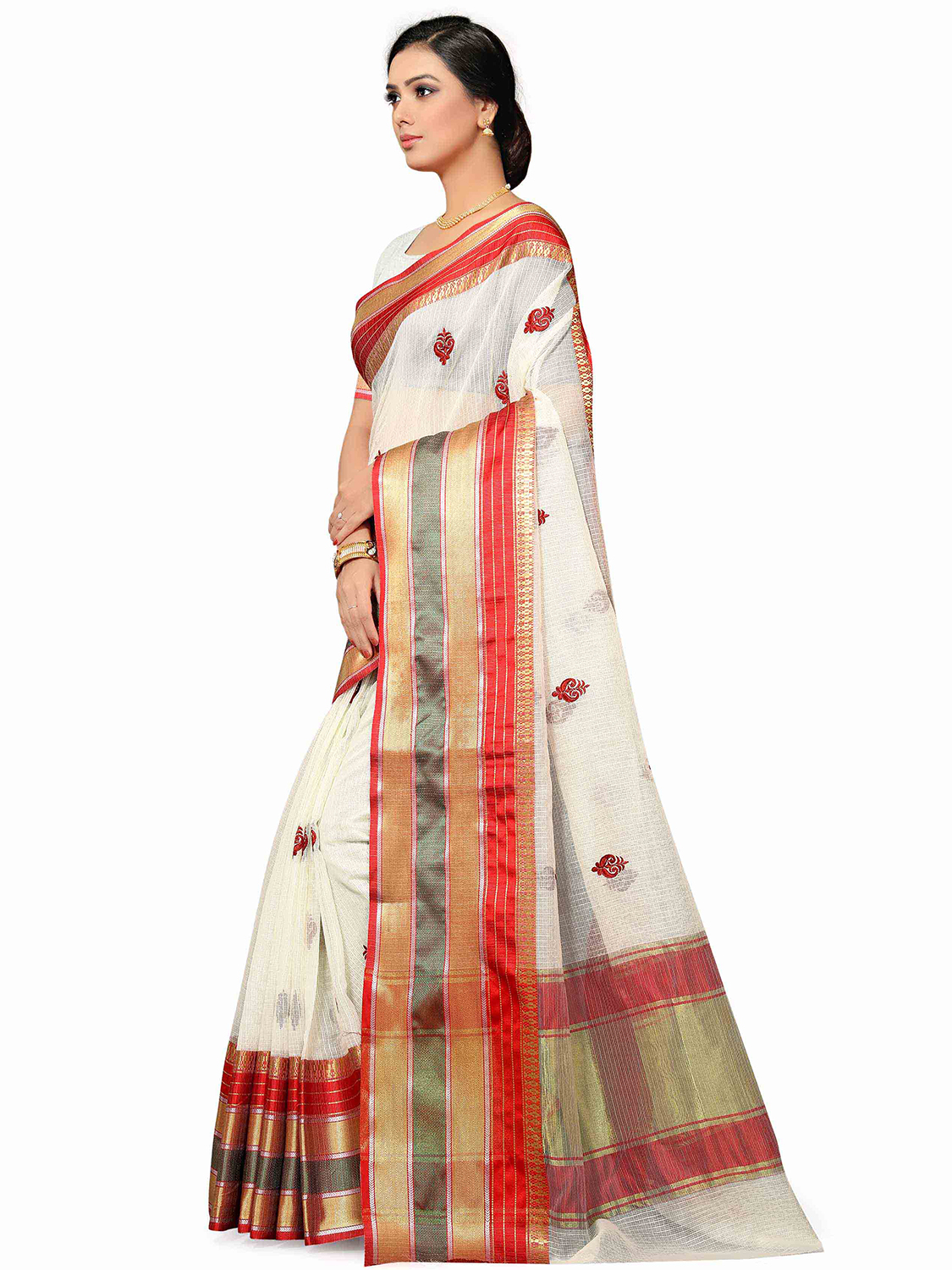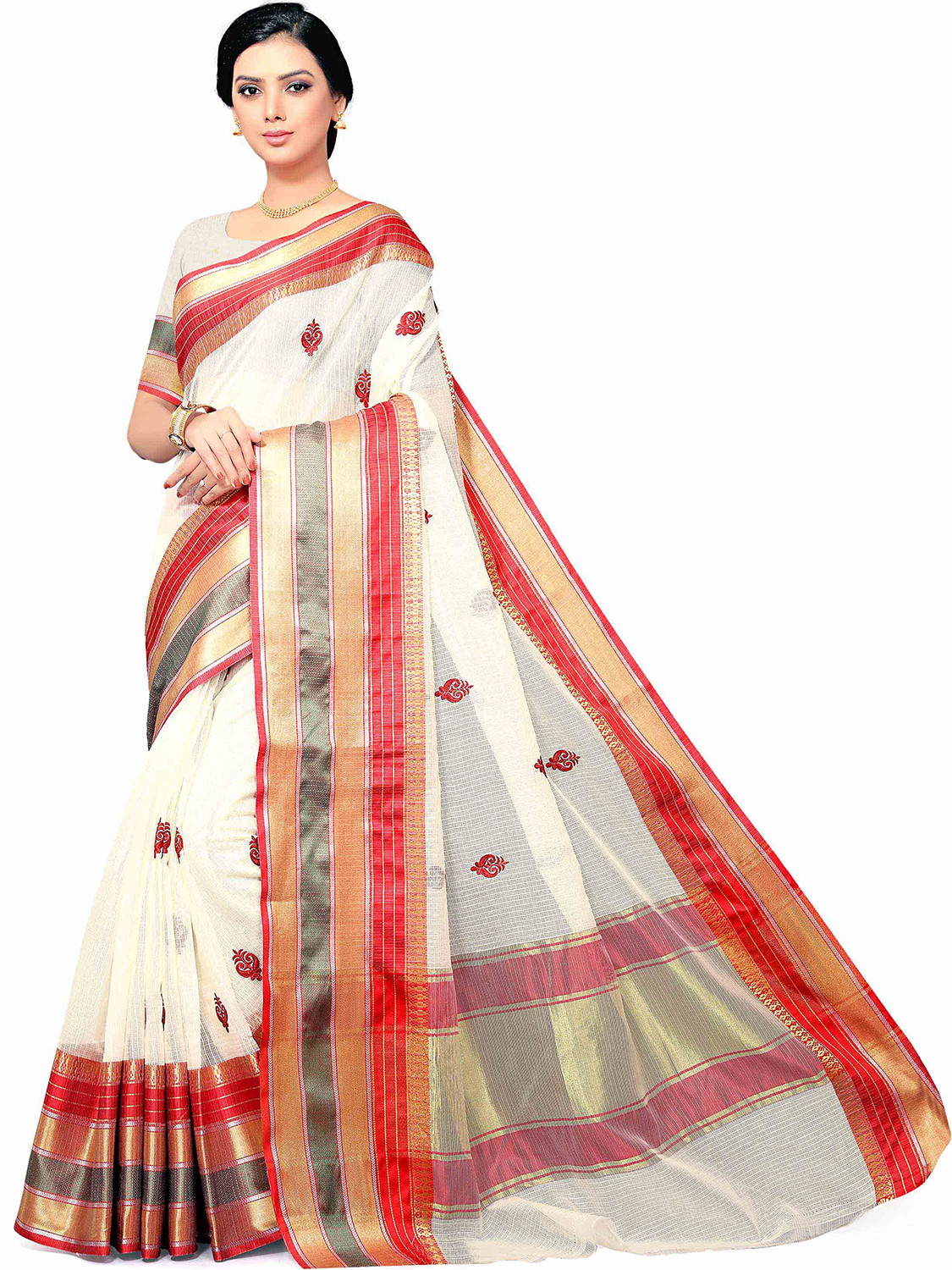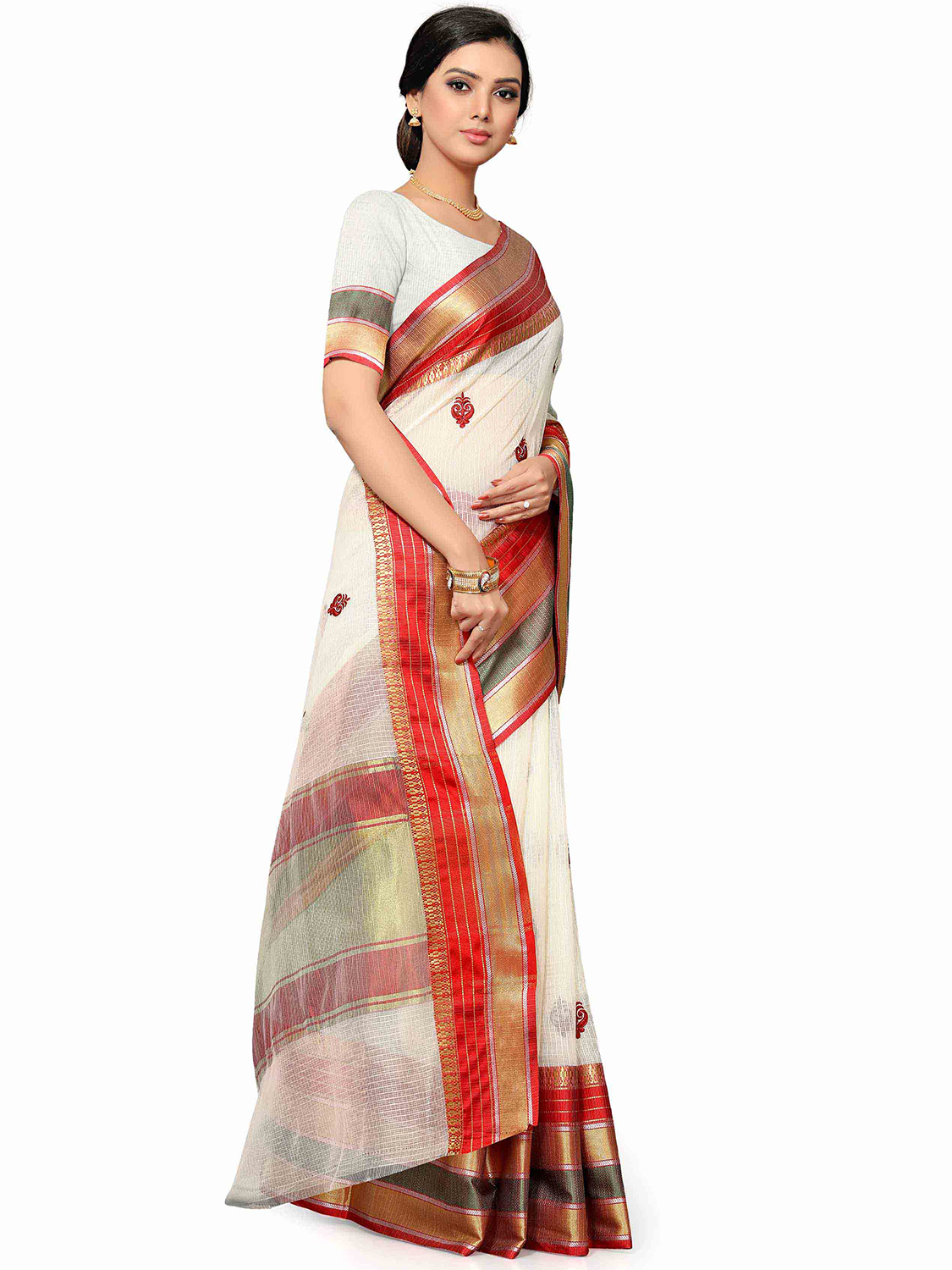 Saree Fabric-Cotton Silk ,Blouse Fabric-Silk Blend