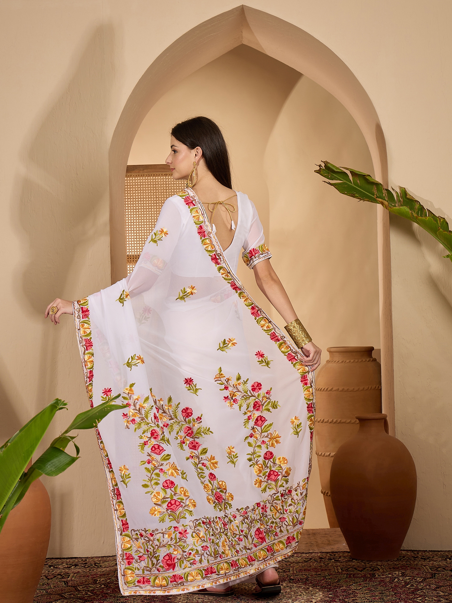 AASTHA FASHION Fashion Dream Womens White Georgette Saree | Soft & Elegant Traditional Wear