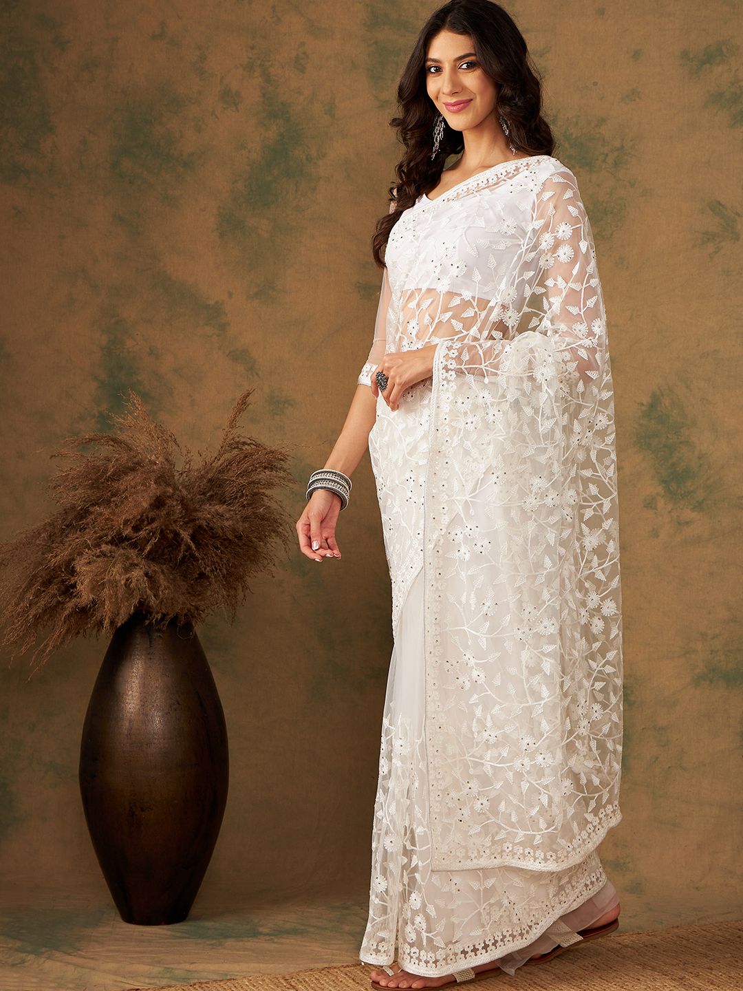 AASTHA FASHION Fashion Dream Womens White Net Saree | Soft & Elegant Traditional Wear