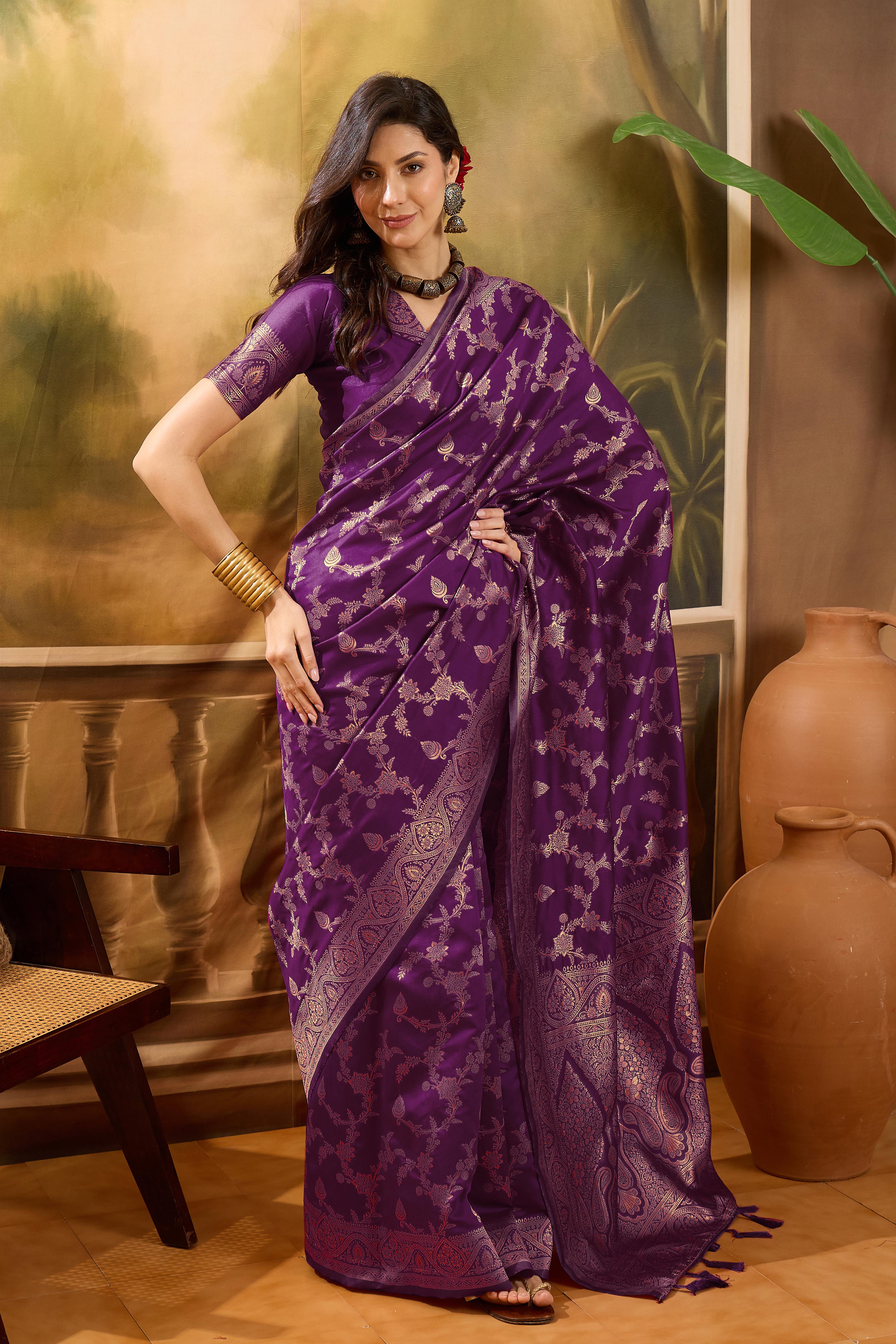 AASTHA FASHION Fashion Dream Womens Wine Banarasi Jacquard Saree | Soft & Elegant Traditional Wear