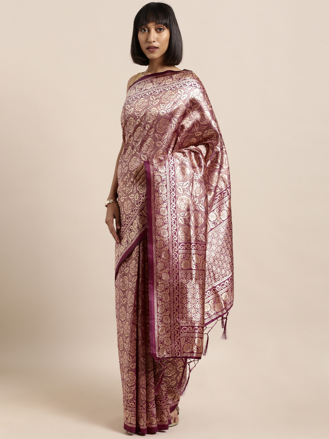 AASTHA FASHION Fashion Dream Womens WINE Banarasi Silk Saree | Soft & Elegant Traditional Wear