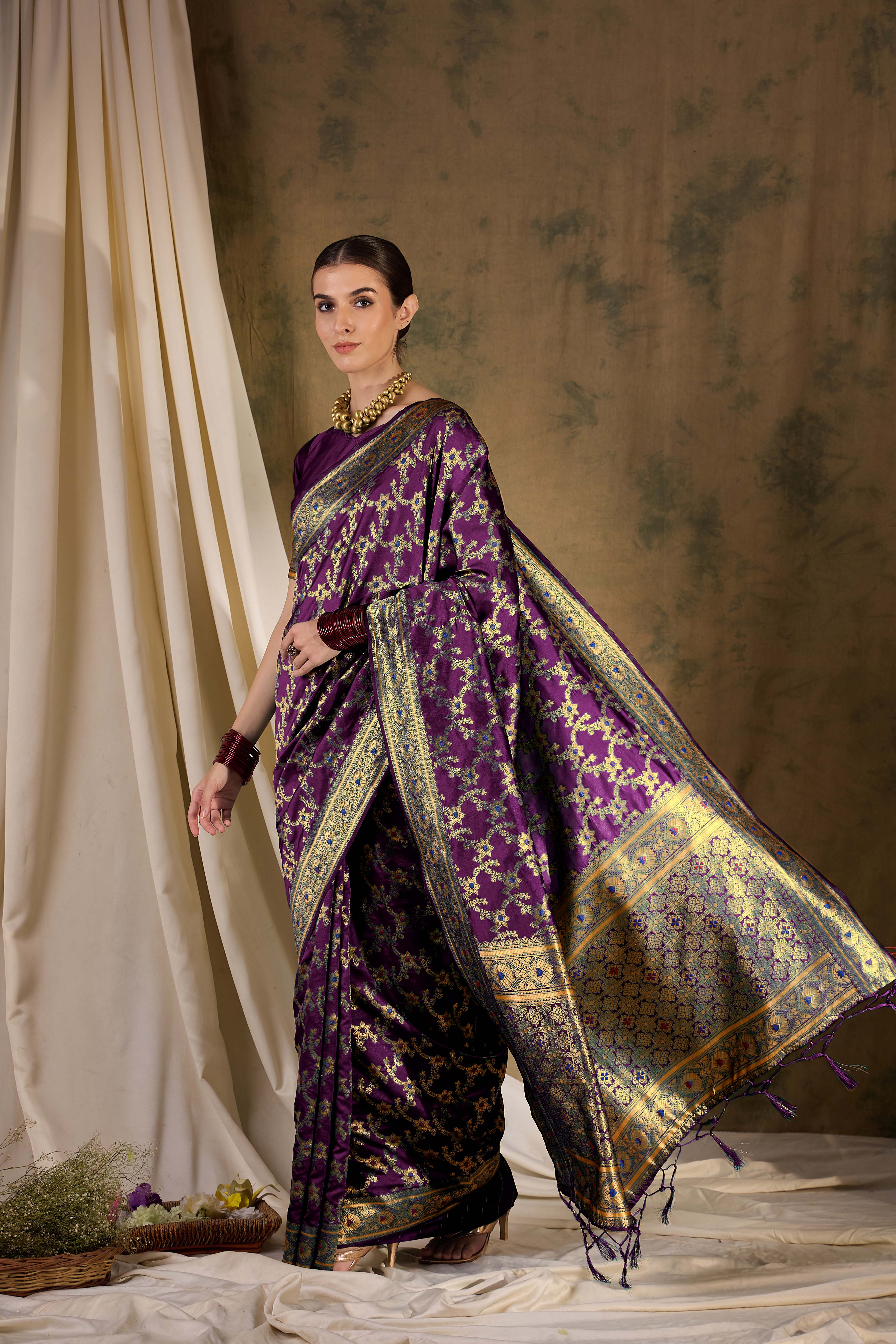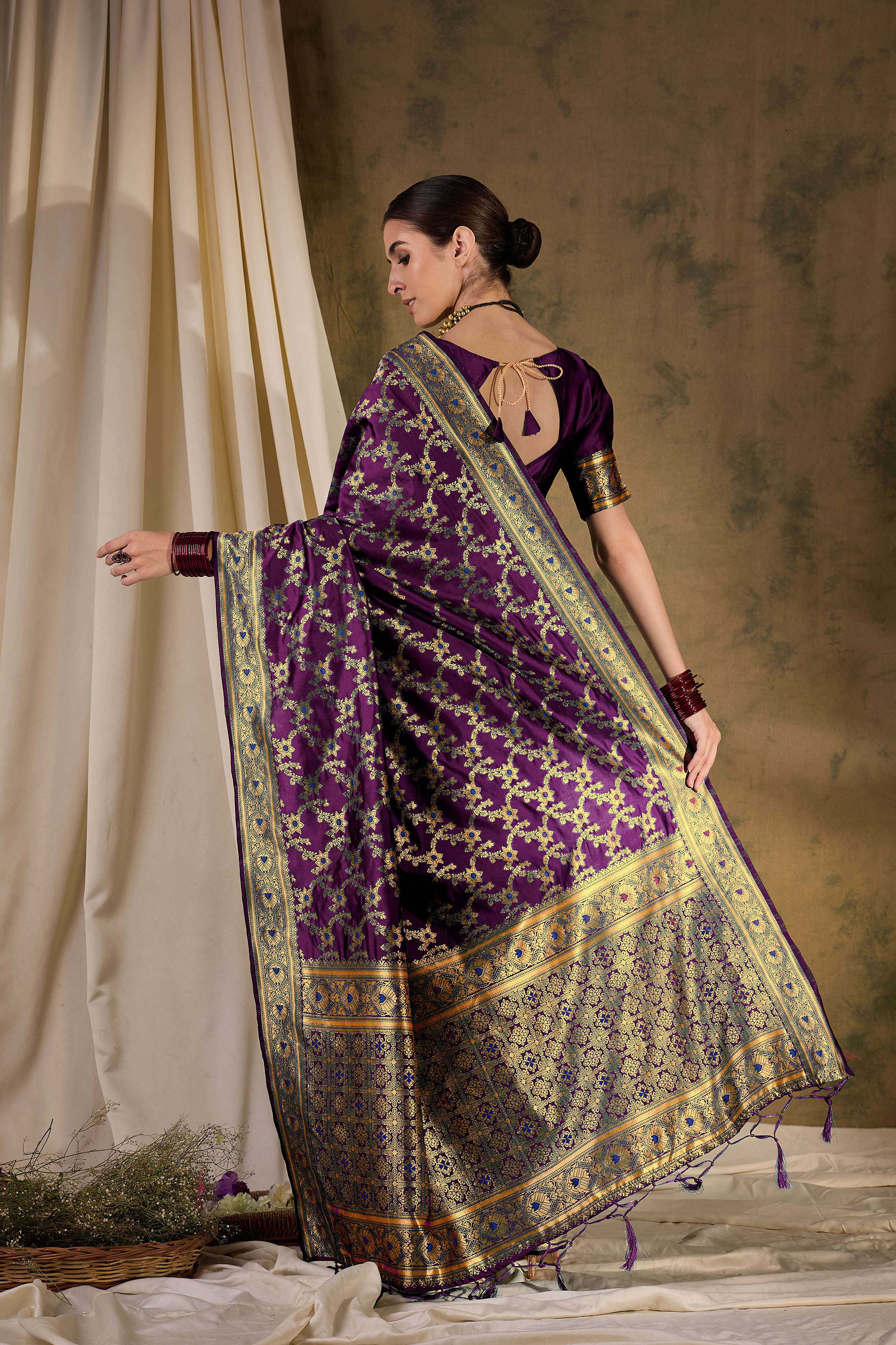 AASTHA FASHION Fashion Dream Womens Wine Banarasi Silk Saree | Soft & Elegant Traditional Wear