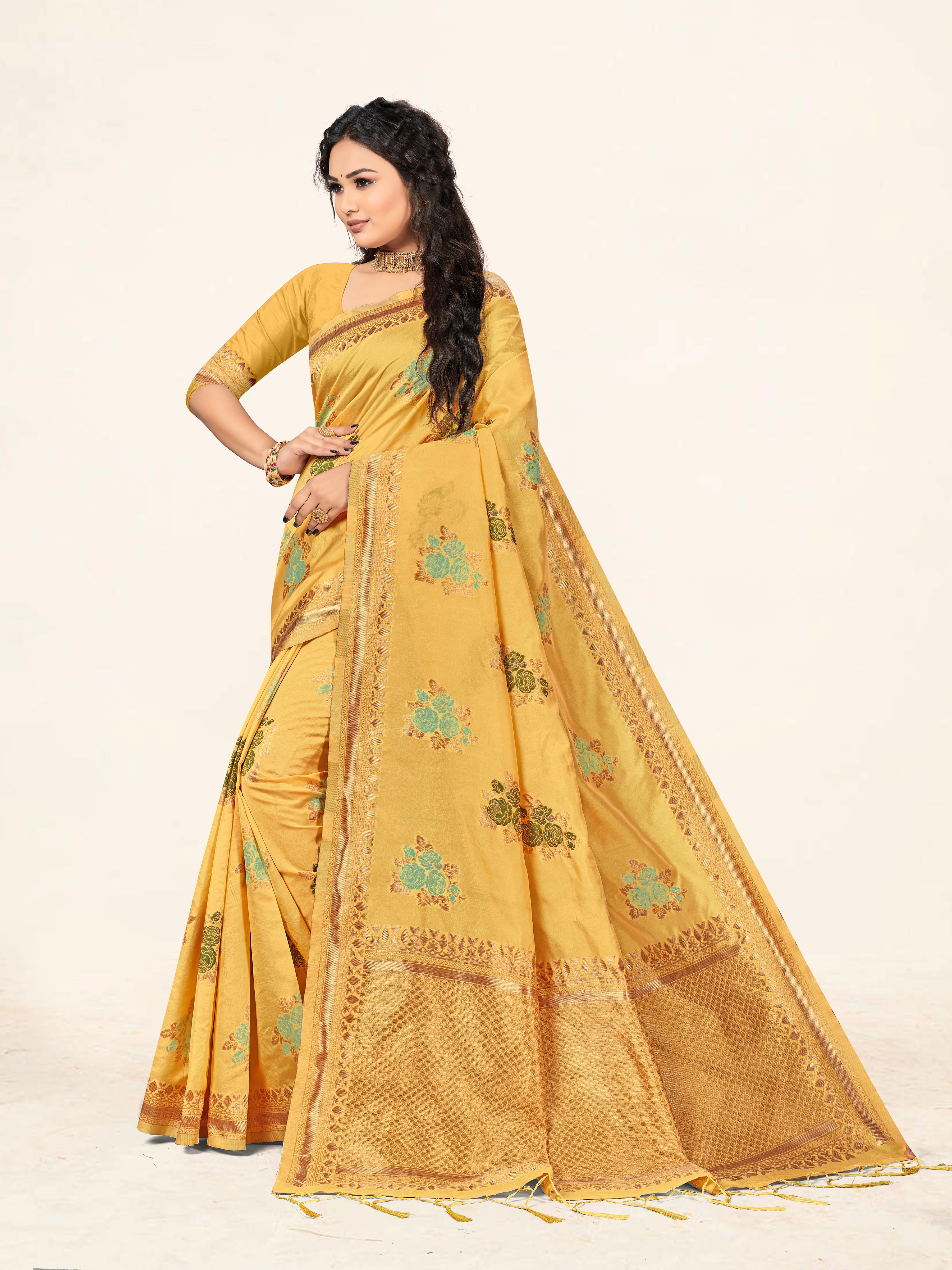 AASTHA FASHION Fashion Dream Womens Yellow Cotton Saree | Soft & Elegant Traditional Wear