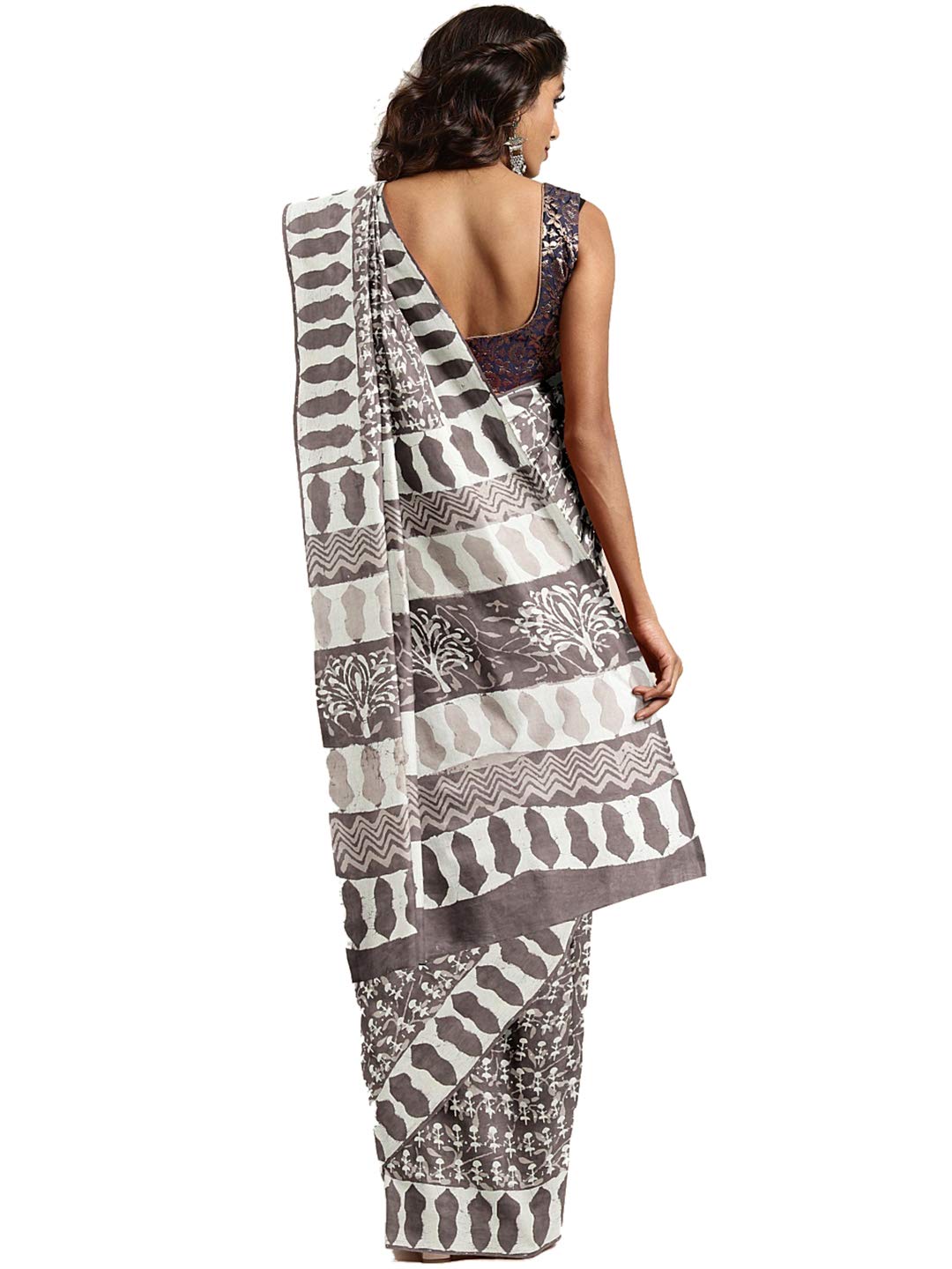 AKOLA DABU PRINT SAREE Women's Pure Cotton Handblock Printed Saree and Blouse (BHKPSA0079 Brown)