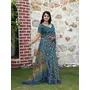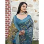 Blue Color Cotton Shimmer Fabric Smart Printed Saree With Woven Border