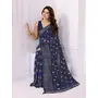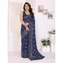 Blue Color Georgette Fabric Designer Foil Printed Ceremonial Saree