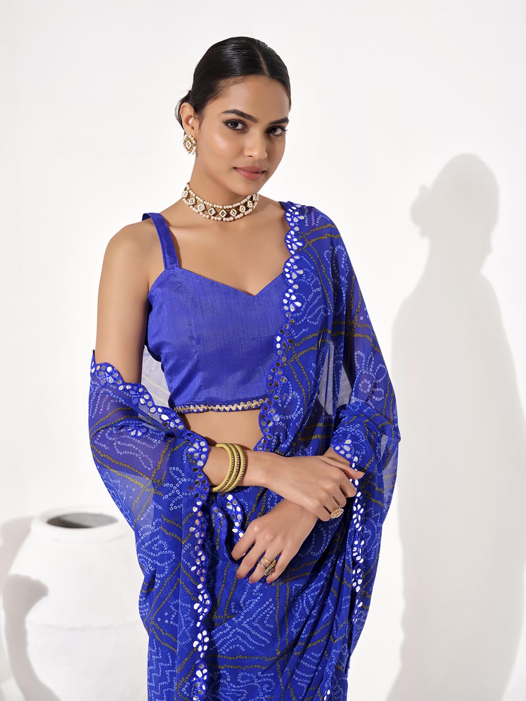 Blue Color Georgette Girlie Designer Printed Saree For Rich Sophisticated Looks