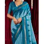 Blue Color Ikkat Silk Fabric Designer Zig Zag Printed Traditional Party Looks Saree