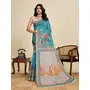 Blue Color Linen Fabric Beautiful Printed Ceremonial Saree