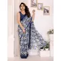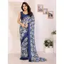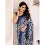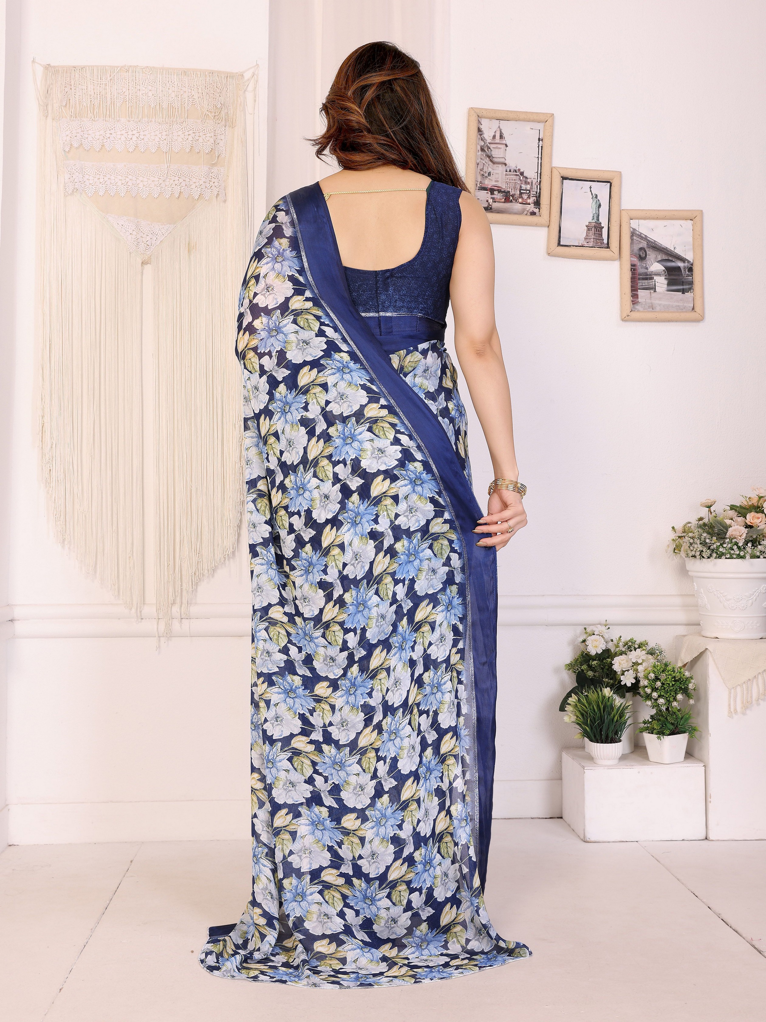 Blue Color Moss Satin Patta Designer Flower Printed Ceremonial Saree