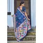 Blue Color Silk Blended Traditional Bandhani Ajrakh Printed Saree