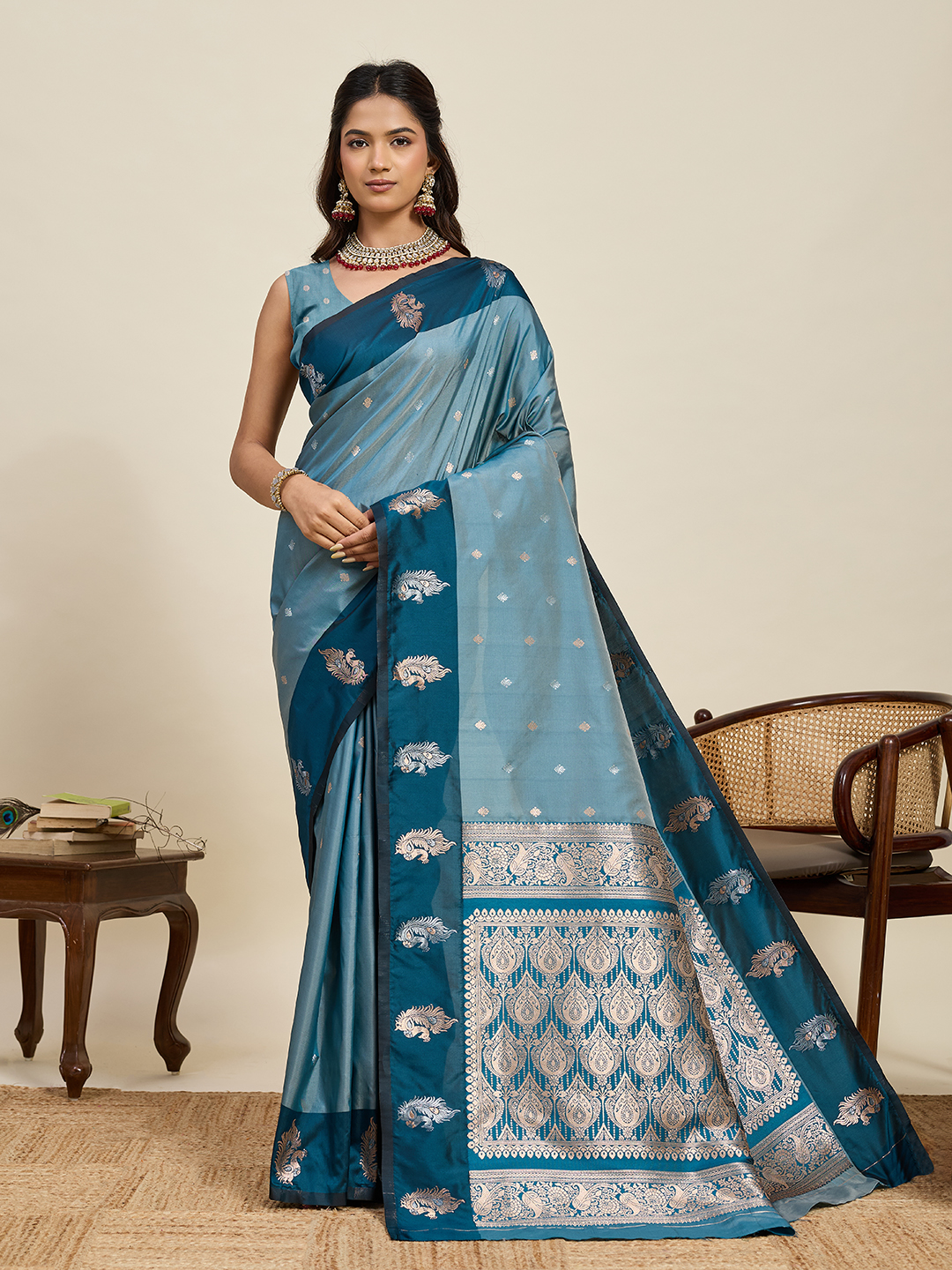 Blue Color Soft Silk Fabric Designer Ethnic Woven Traditional Saree