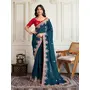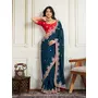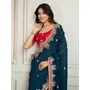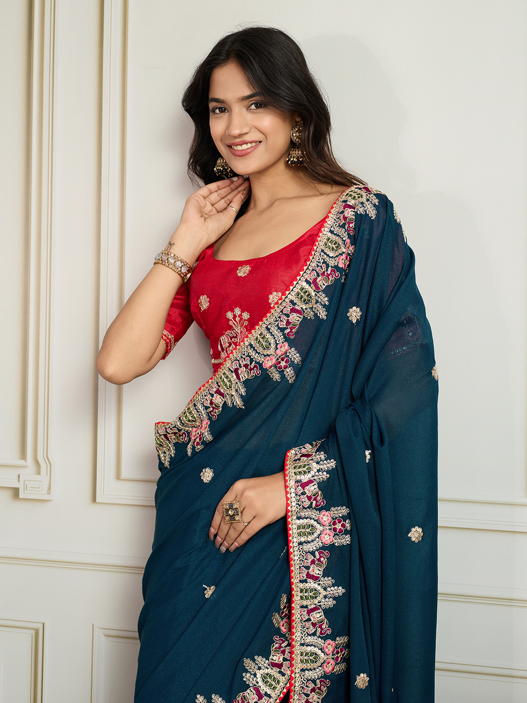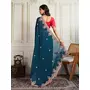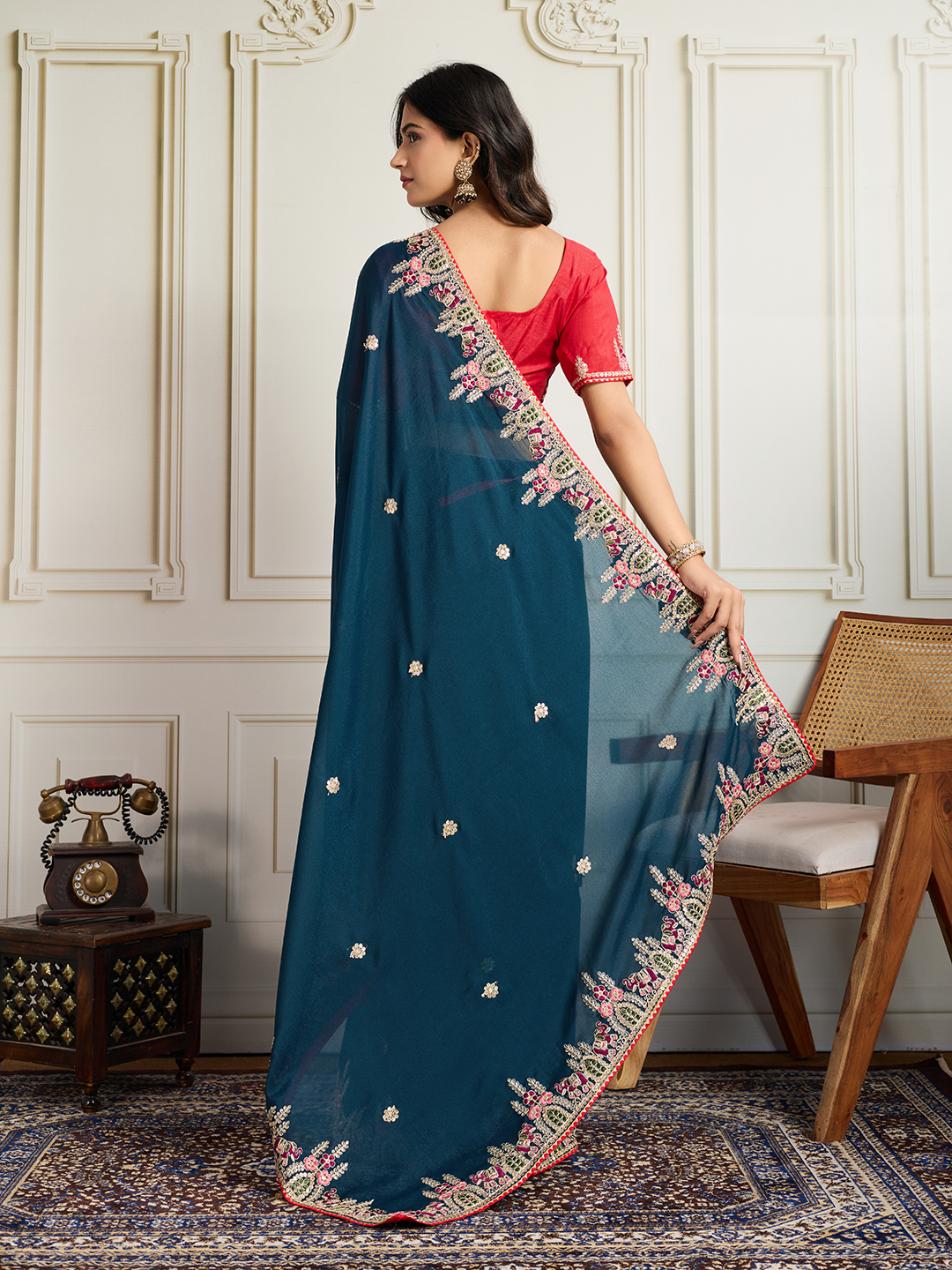 Blue Color Star Georgette Fabric Designer Embroidery Work Heavy Ceremonial Saree