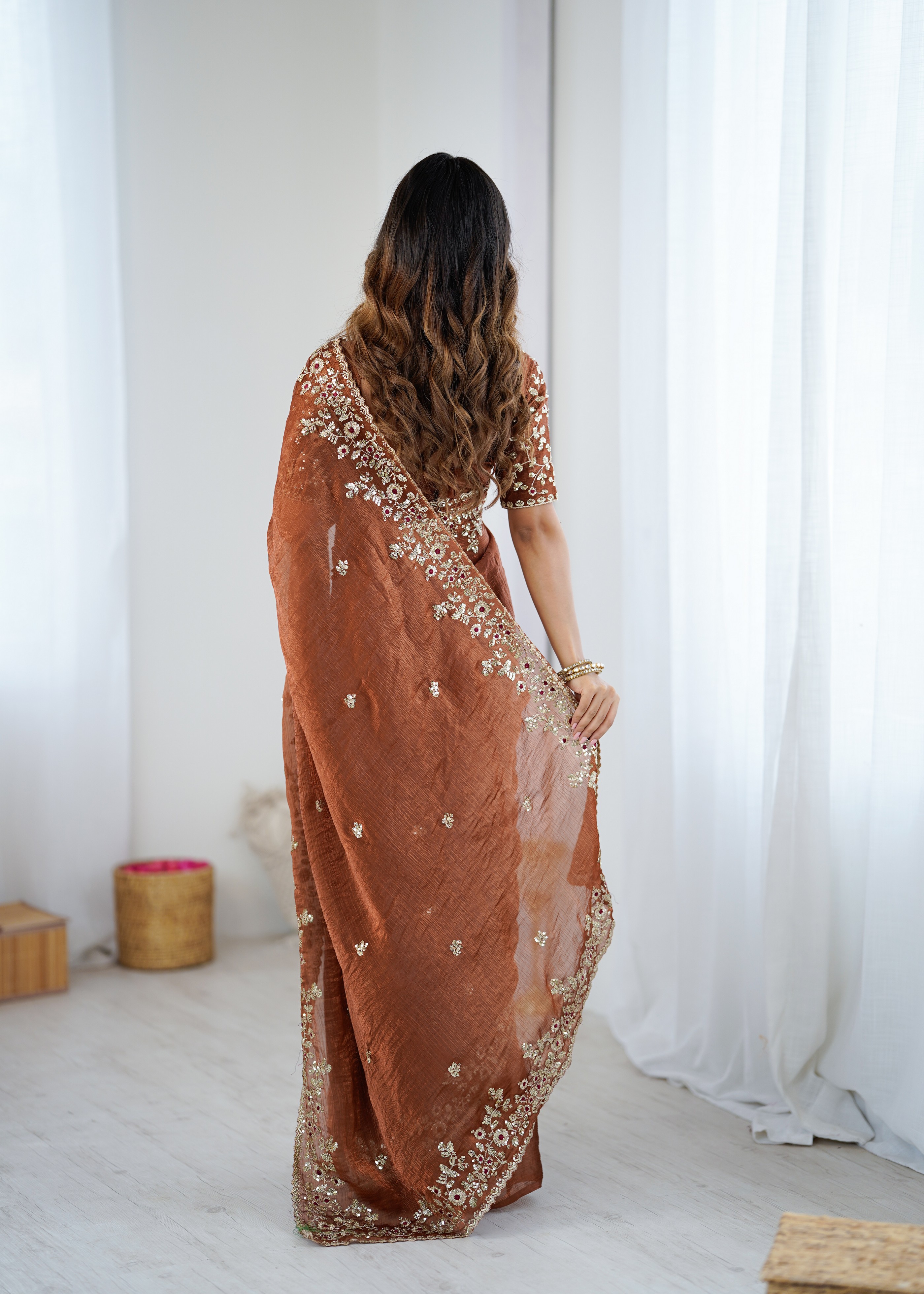 Brown Color Trendy Fendy Chiffon Fabric Glamorous Partywear Saree