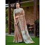 Brown Color Woven Designer Floral Embroidered Butta Festive Saree