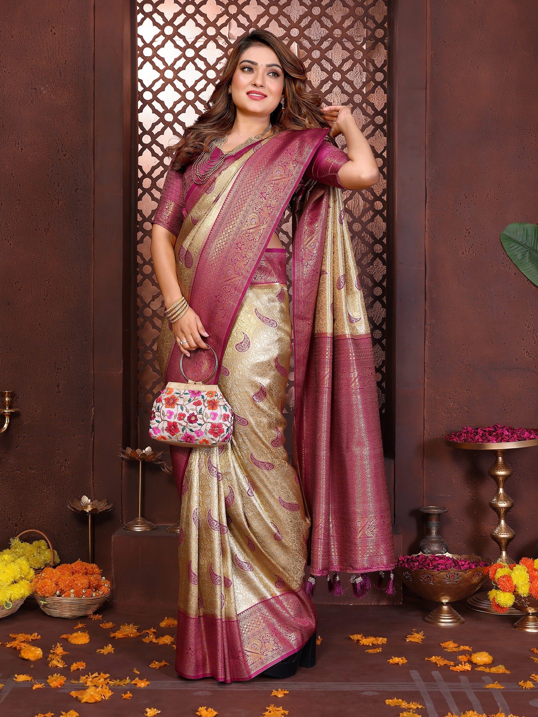 Crean Color Banarasi Tissue Silk Woven Rich Paithani Designer Ceremonial saree