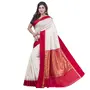 DipDiya Women Art Silk Traditional Bengali Lal Par Kanjivaram Saree with Blouse Piece (White Red)