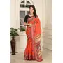 Ethnic Orange Color Beatutiful Linen Cotton Digital Printed Saree