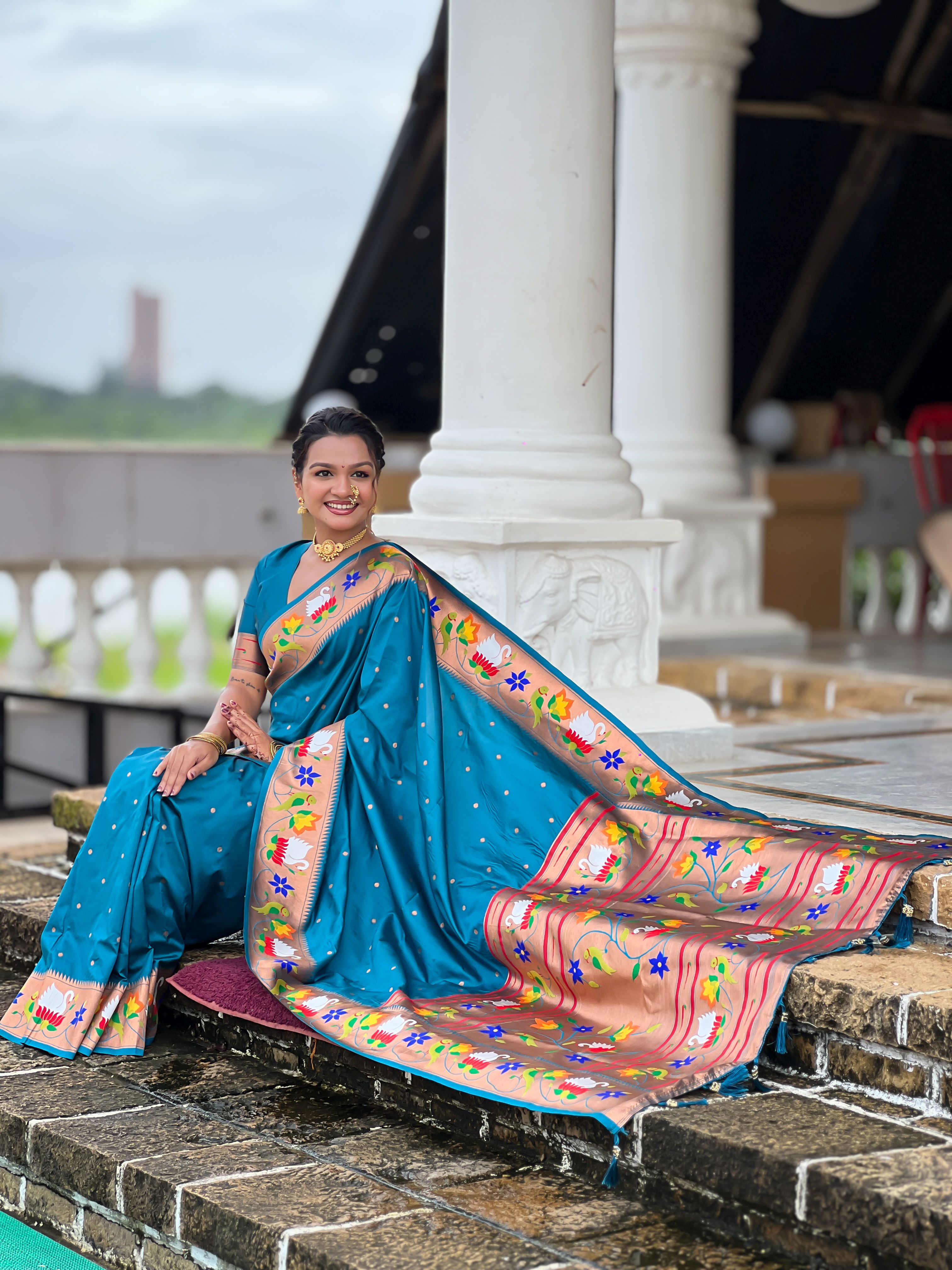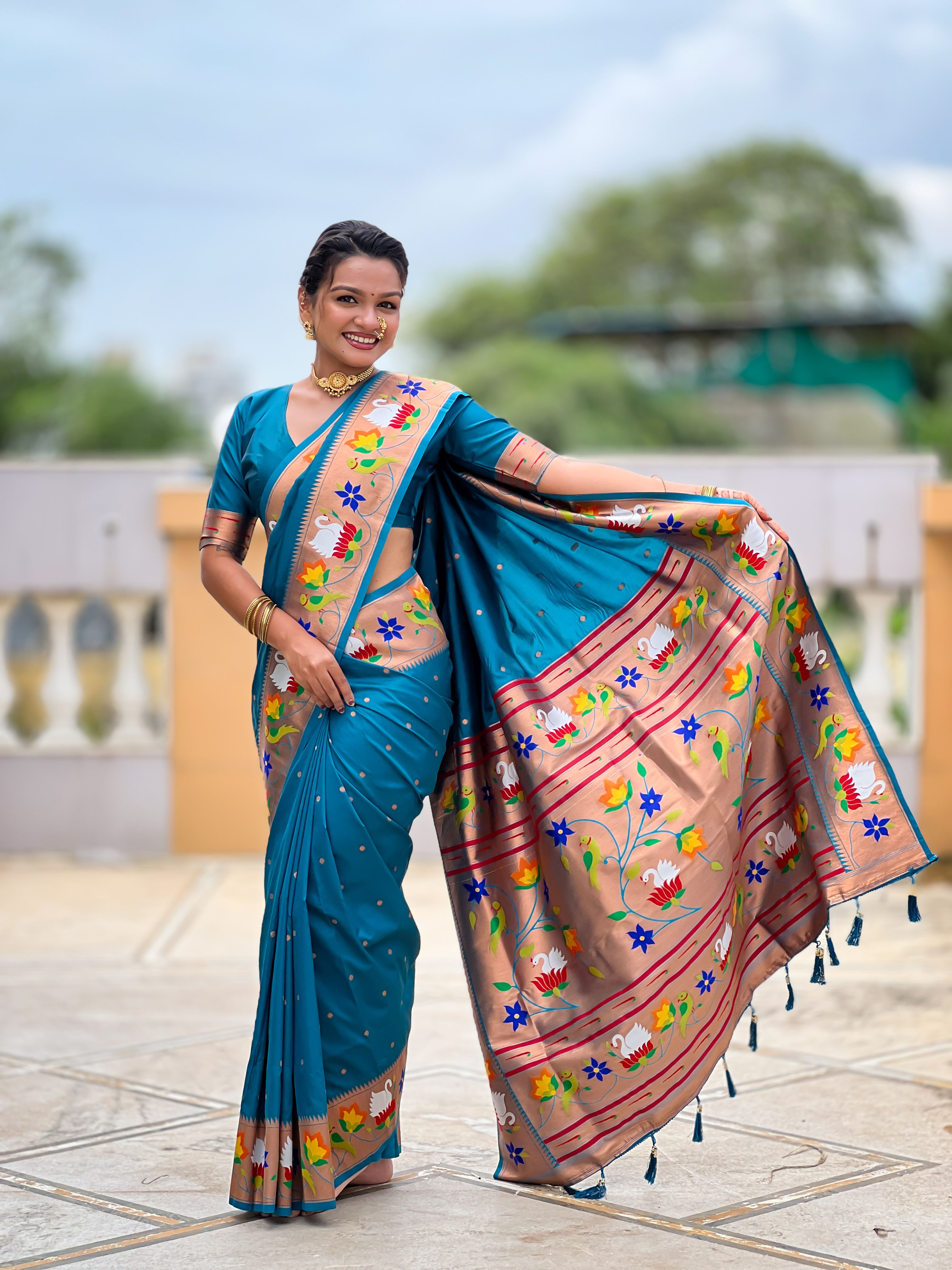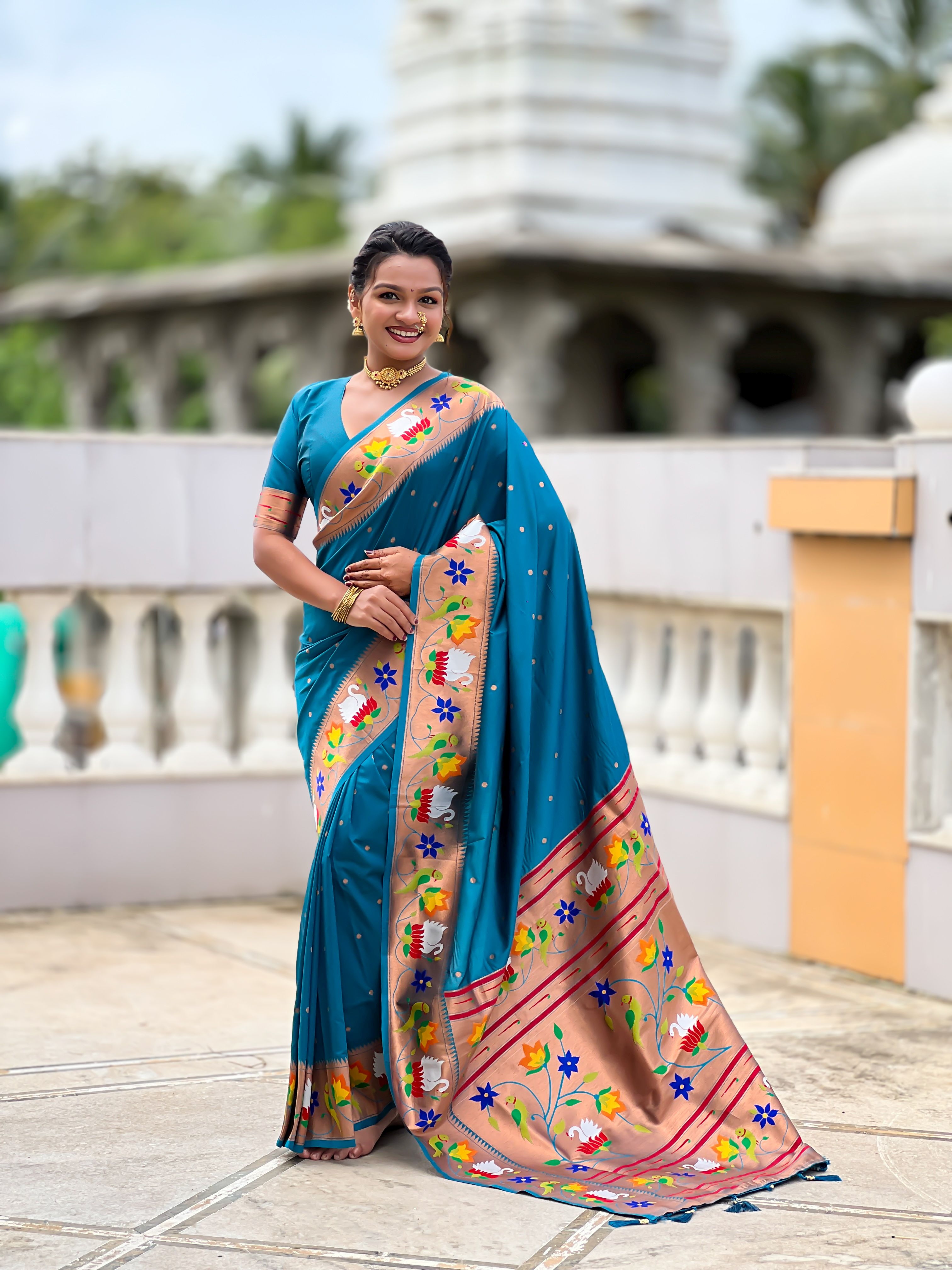 Firozi Color Paithani Silk Woven Meenakari Jacquard Designer Heavy Wedding Special Saree