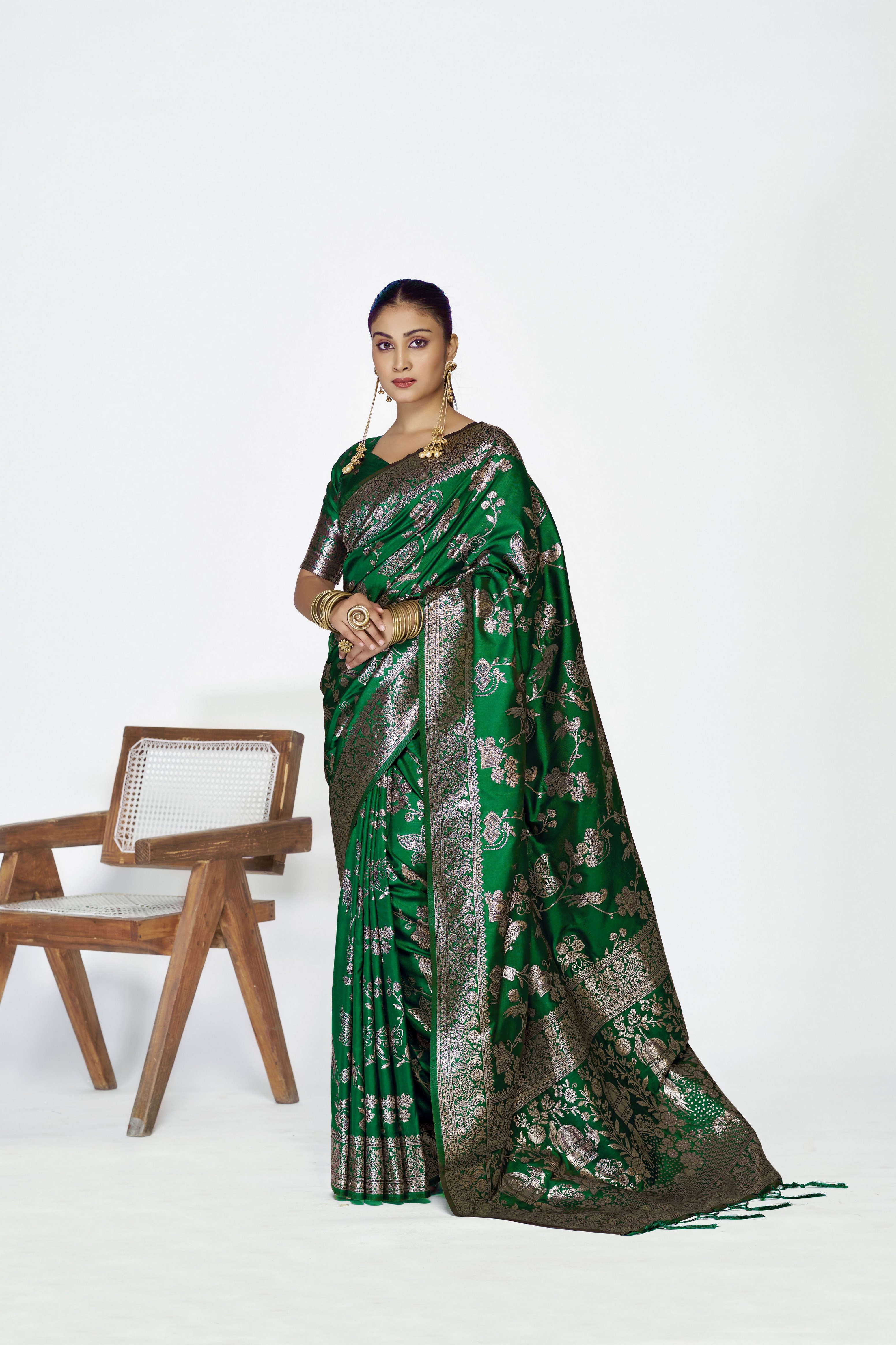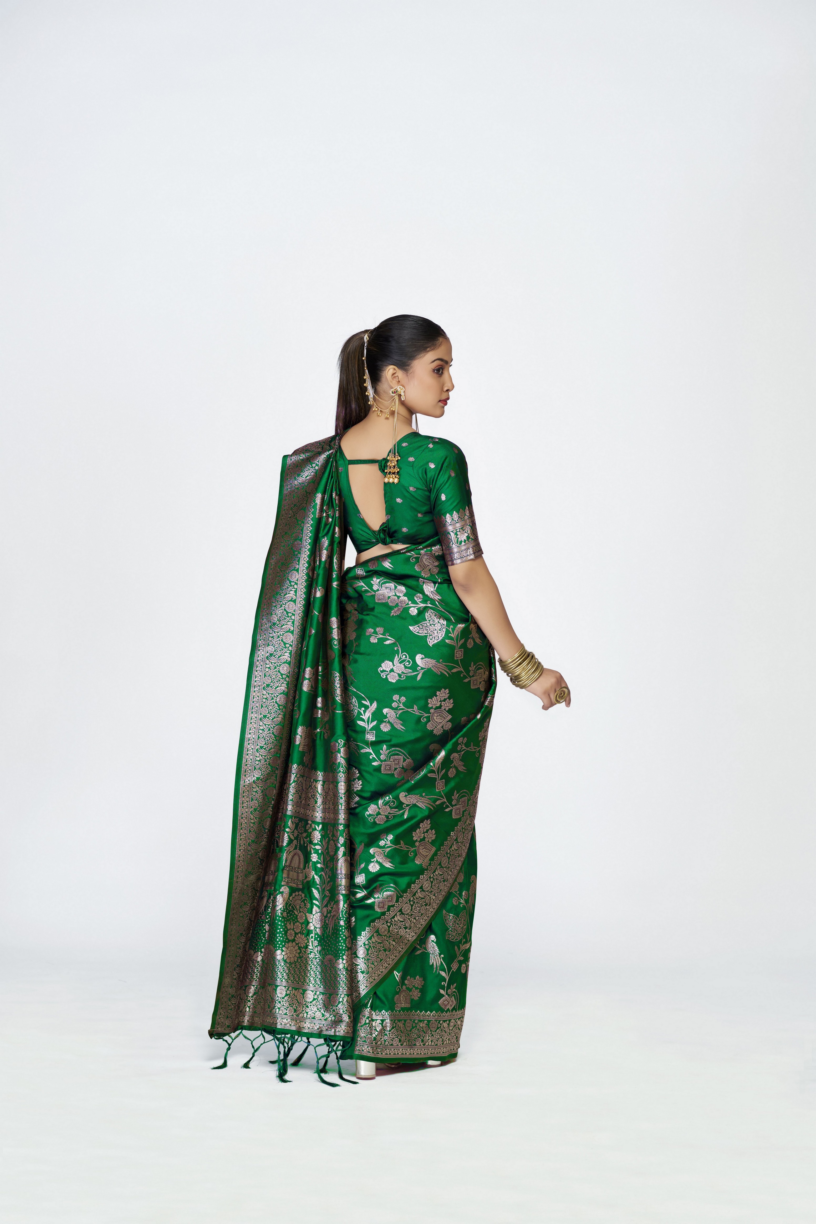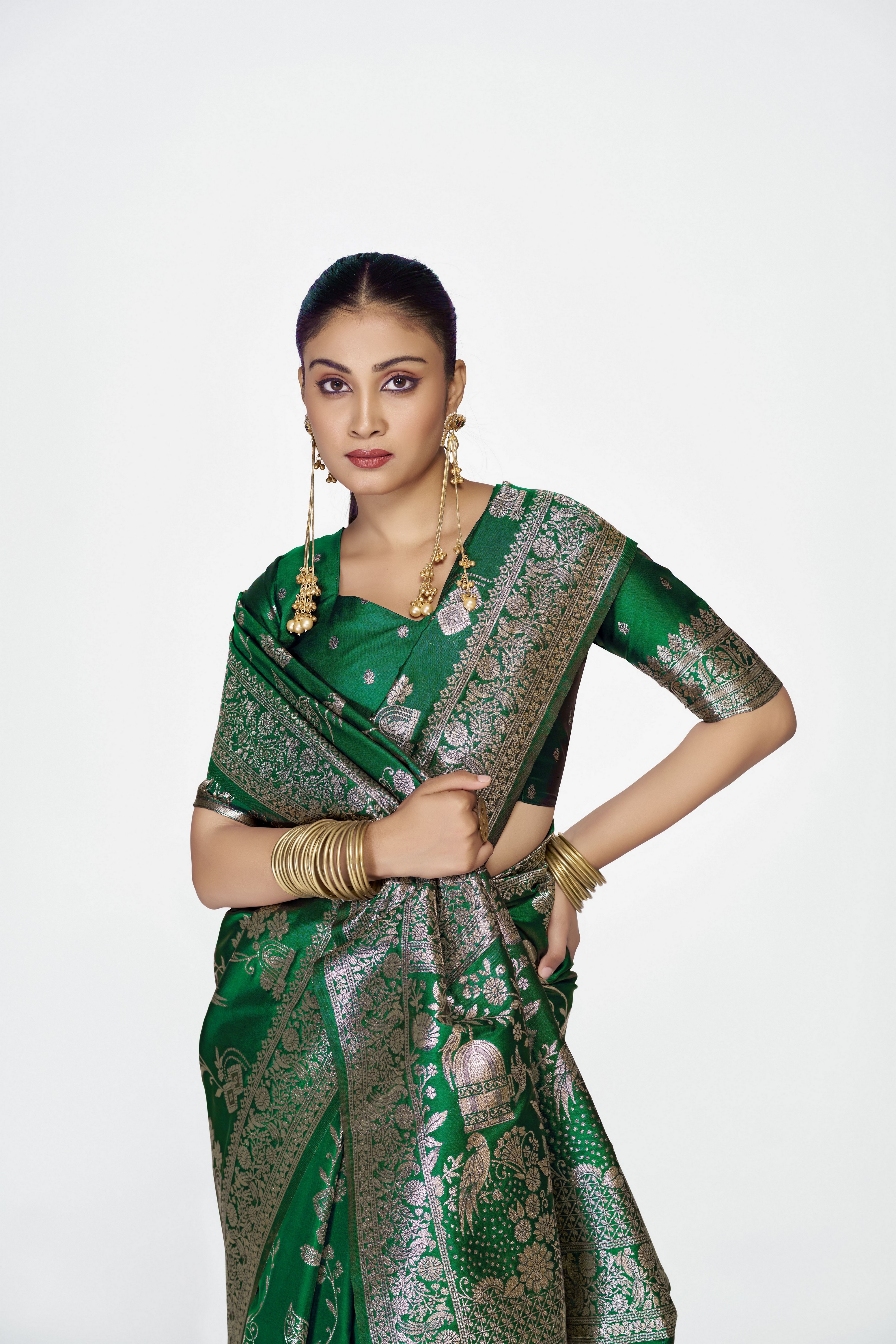 Green Color Banarasi Silk Fabric Woven Jari Designer Ceremonial Partywear Saree
