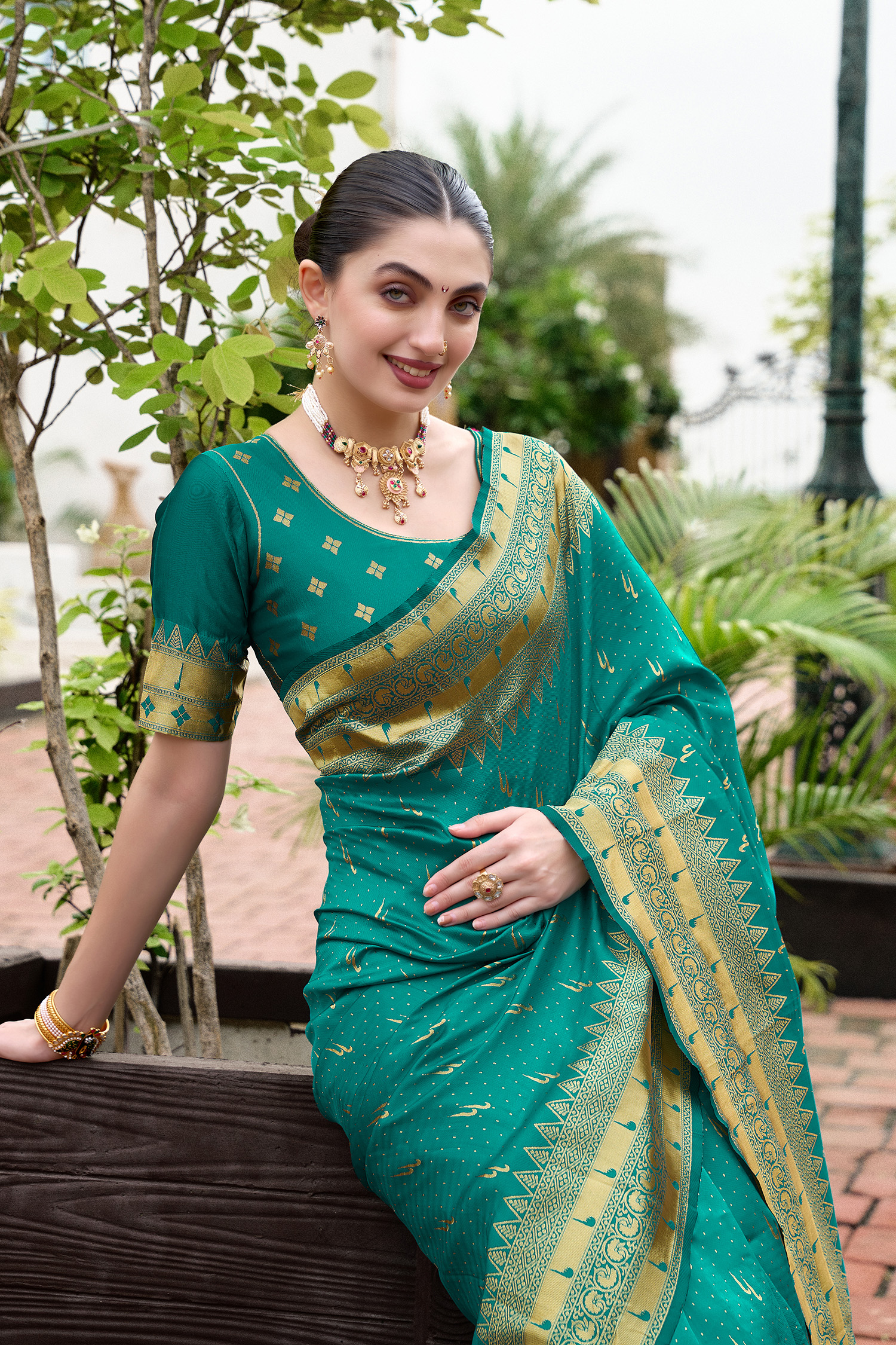 Green Color Beautiful Silk Blended Woven Zari Designer Ceremonial Saree
