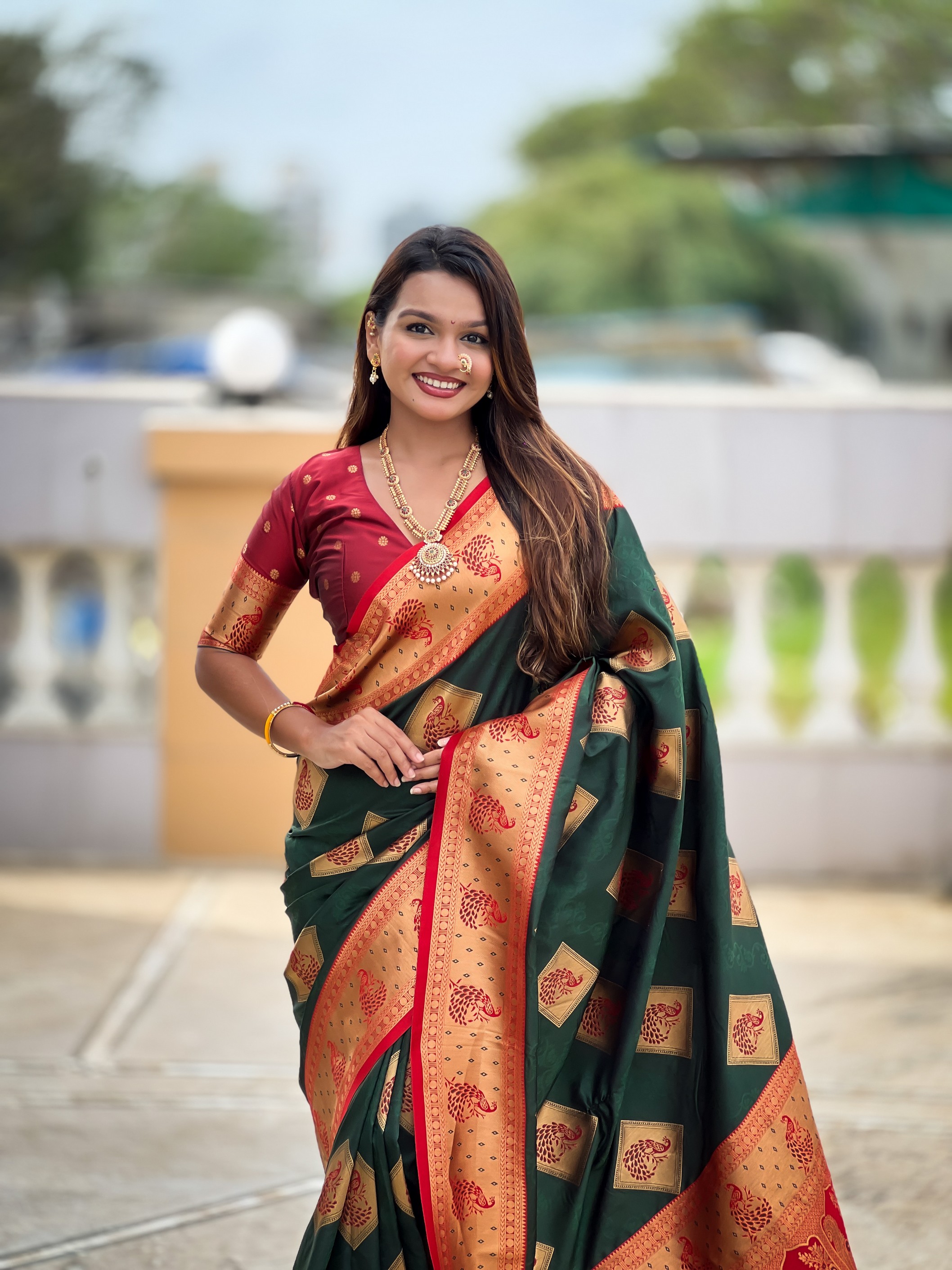 Green Color Beautiful Woven Designer Meenakari Banarasi Silk Saree